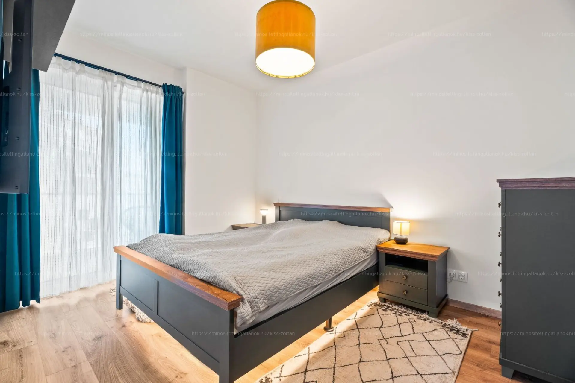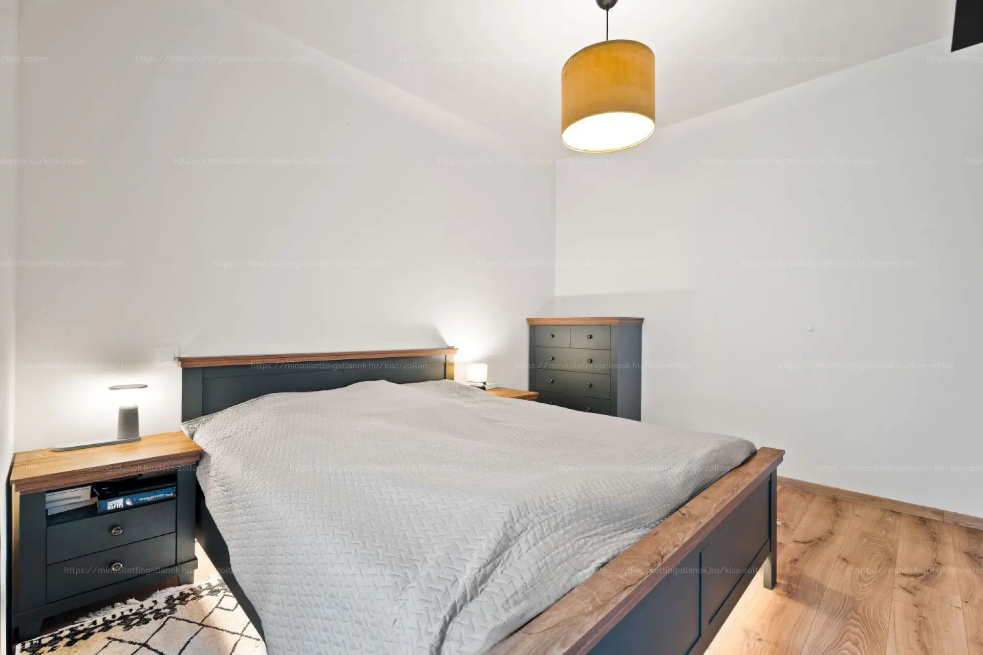 A lakás elosztása rendkívül praktikus és jól élhető. Amerikai konyhás nappalija tágas és barátságos, tökéletes helyszíne a mindennapi életnek és a vendégek fogadásának. Két kényelmes méretű, külön nyíló hálószoba áll rendelkezésre, melyek ideálisak hálószobának, dolgozószobának vagy gyerekszobának is. A fürdőszoba modern kialakítású, zuhanyzós, emellett külön WC és egy önálló gardrób helyiség is kialakításra került, ami jelentősen növeli a komfortérzetet és a tárolási lehetőségeket.