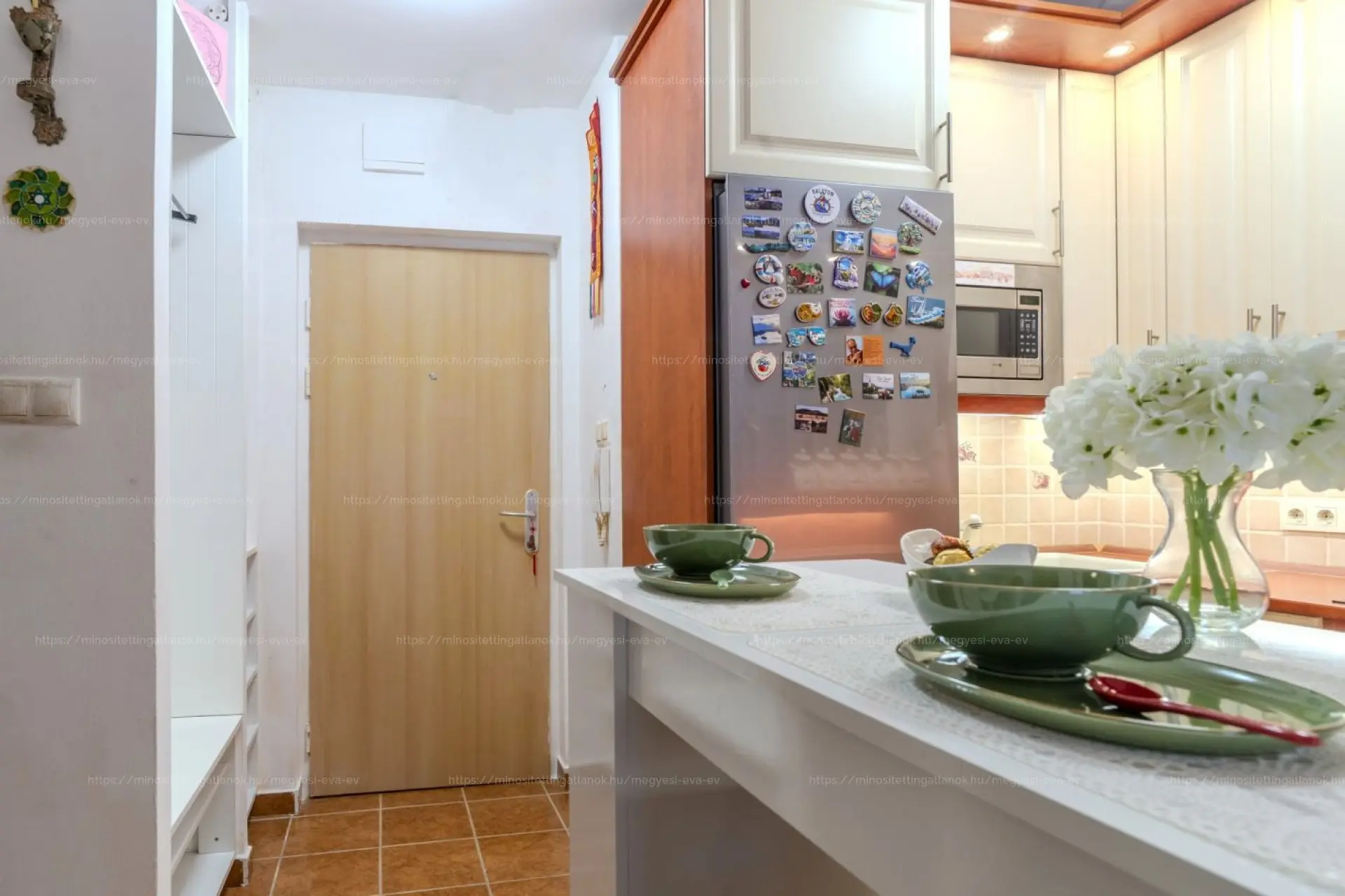 A gépesített konyhabútor a vételár része: Iwave mikró, Gorenje szagelszívó, Ariston kerámialapos tűzhely és sütő, Samsung hűtő és mélyhűtő (igény esetén a beépített szekrények is maradhatnak). A ház kívül-belül KIVÁLÓ ÁLLAPOTÚ. M3 METRÓ (Nagyvárad tér) pár perc sétával elérhető, a környéken minden kéznél van. Parkolás fizetős; a házban TEREMGARÁZS-HELY BÉRELHETŐ.