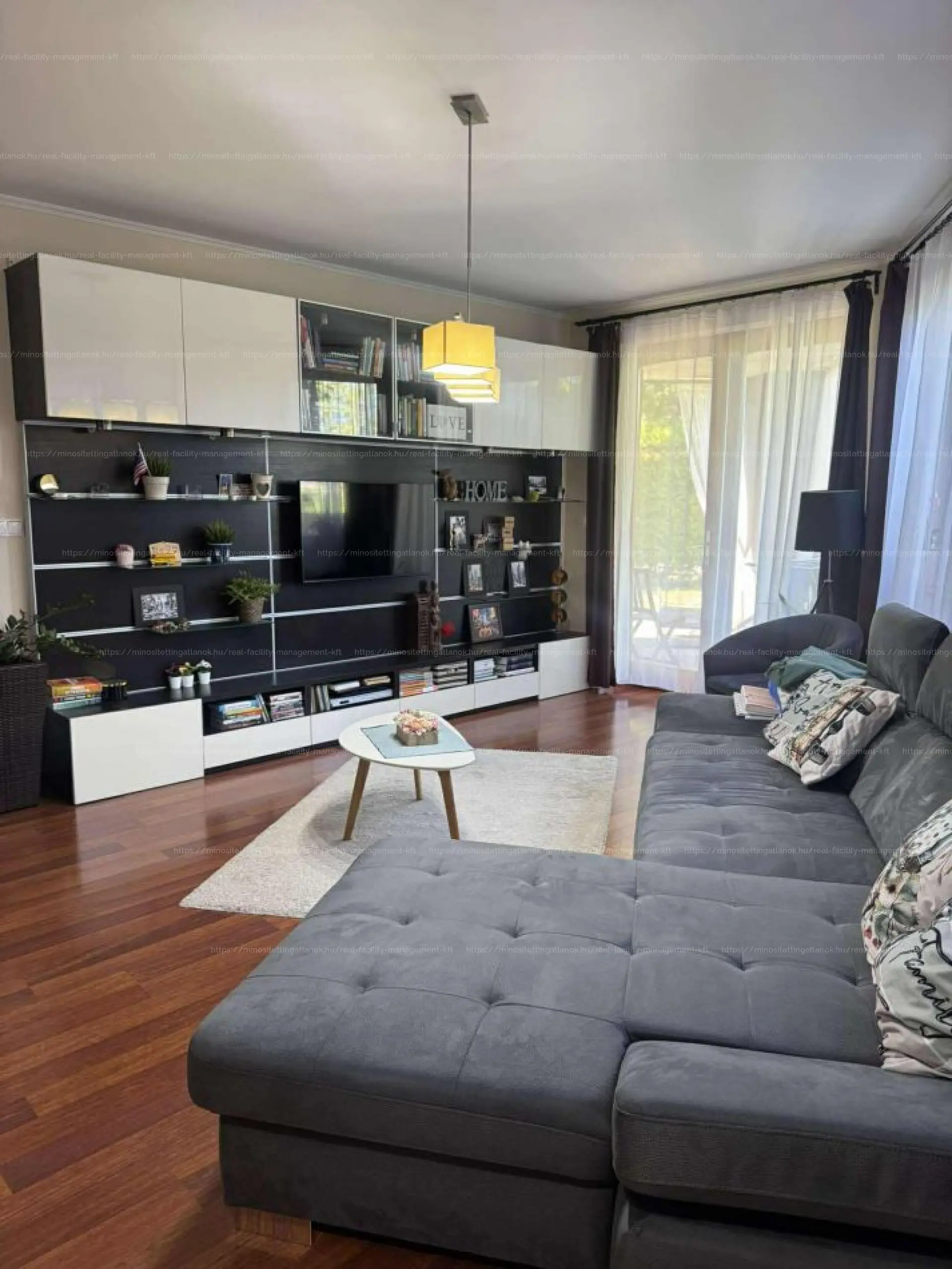 A lakáshoz tartozik egy 18 m²-es fedett terasz, valamint 103 m² saját, intim kertkapcsolat, amely igazi kikapcsolódást nyújt.