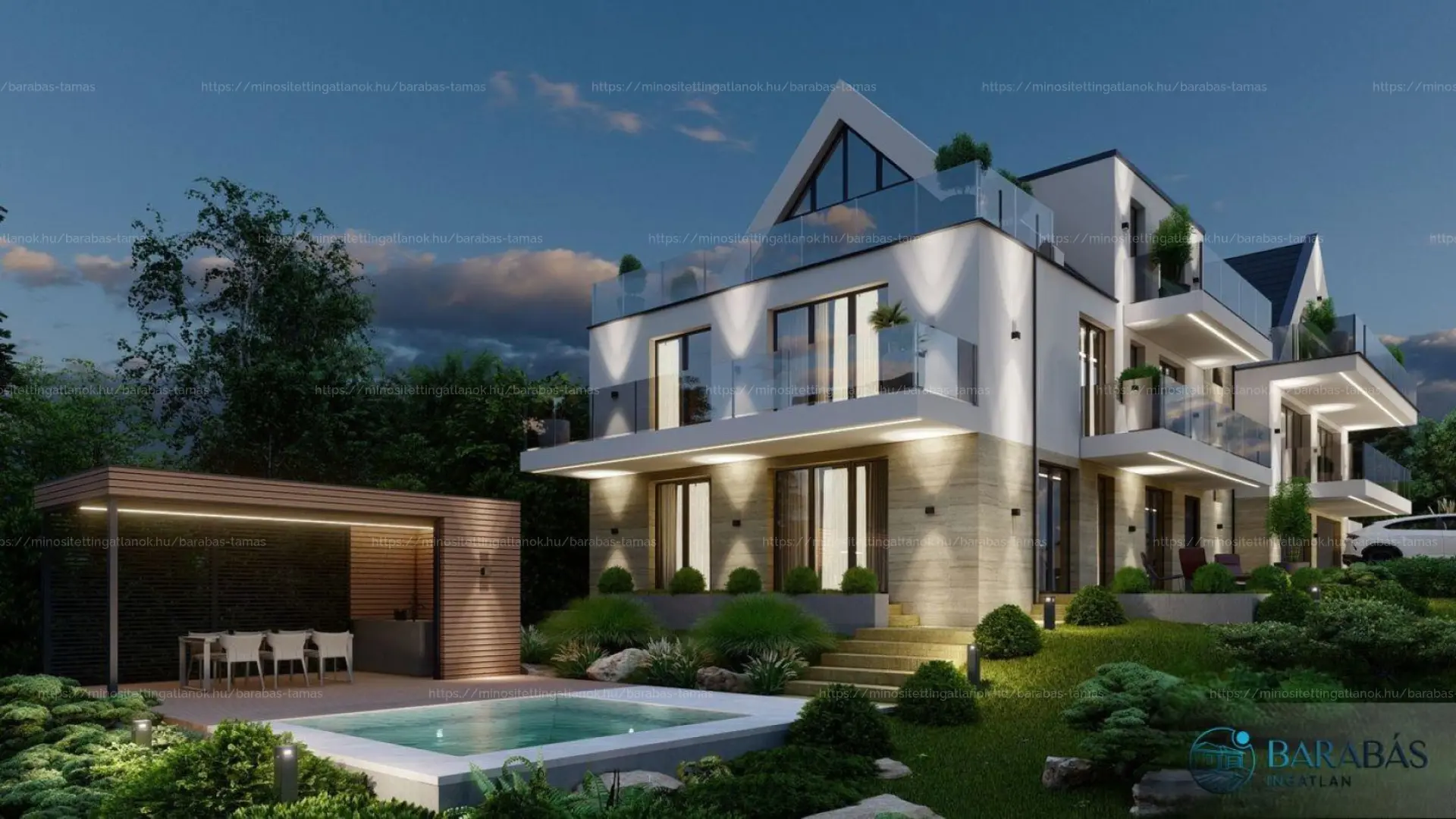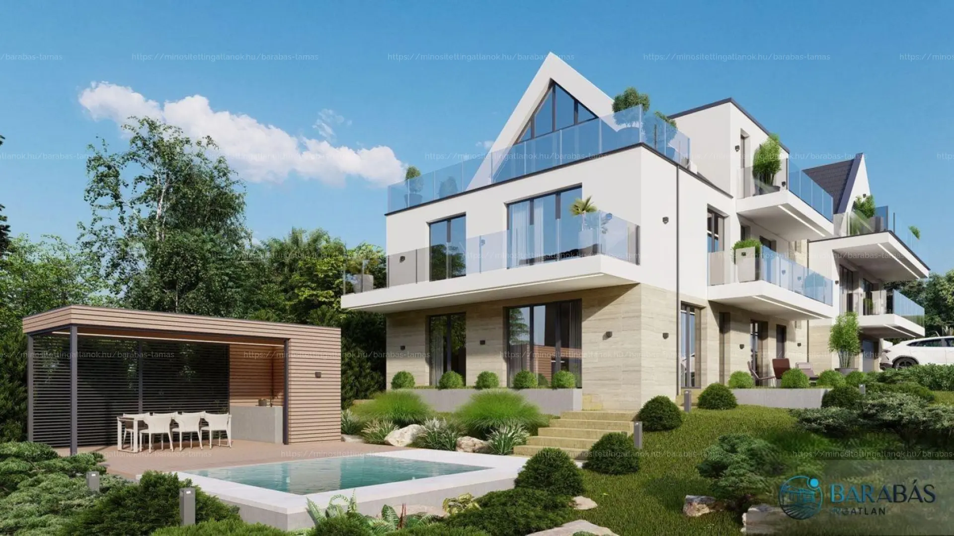 Nettó alapterület: 144 m2 + teraszok összesen: 63 m2 + hozzá tartozó kertrész 254 m2