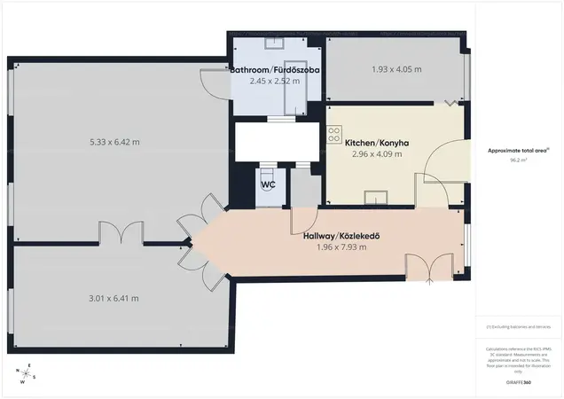 A fürdőszob, a WC és a kamra a lichthof-ra nyílik, ami szellőzést biztosít ezeknek a helyiségeknek is.