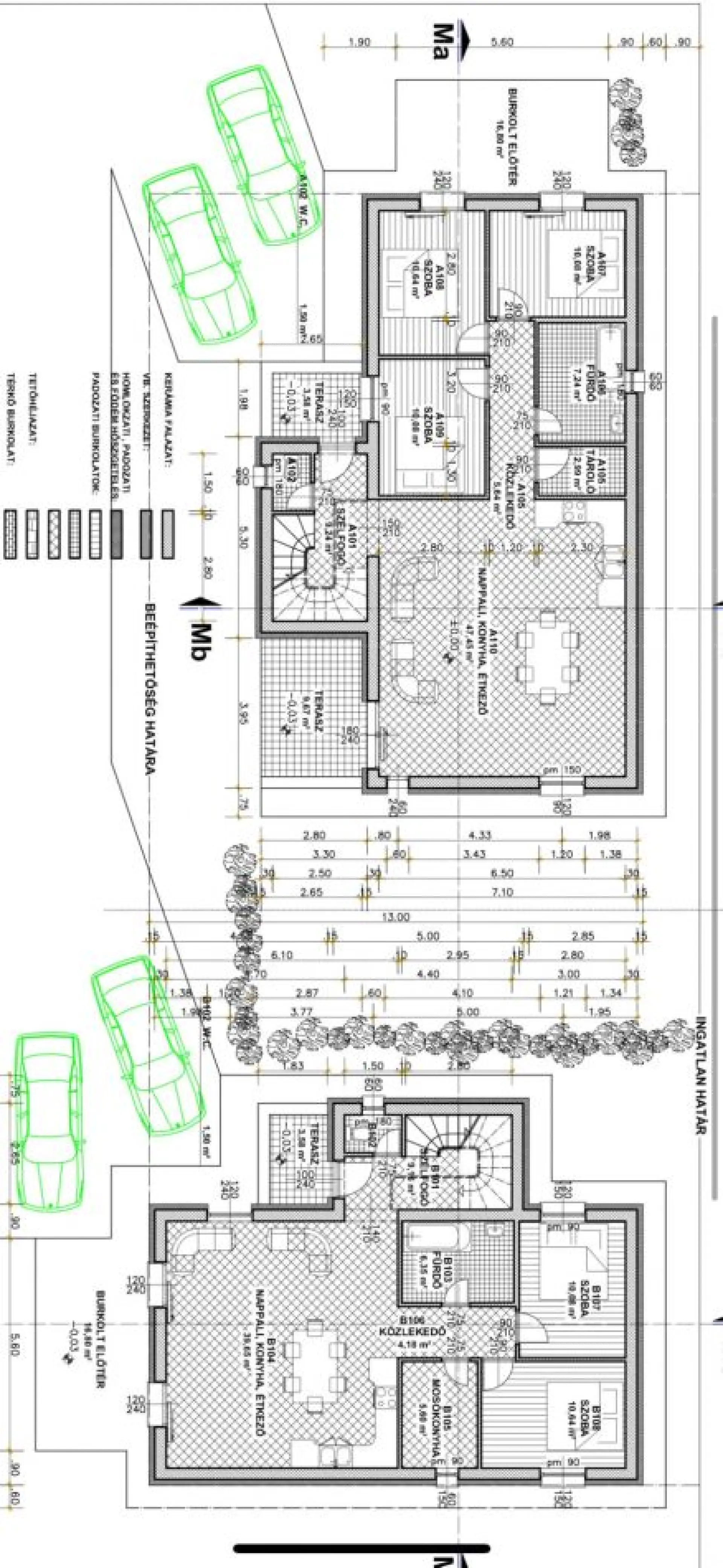 -Földszint: 87 m², 2  hálószoba, fürdő, WC, amerikai konyhás nappali, 4 m² terasz