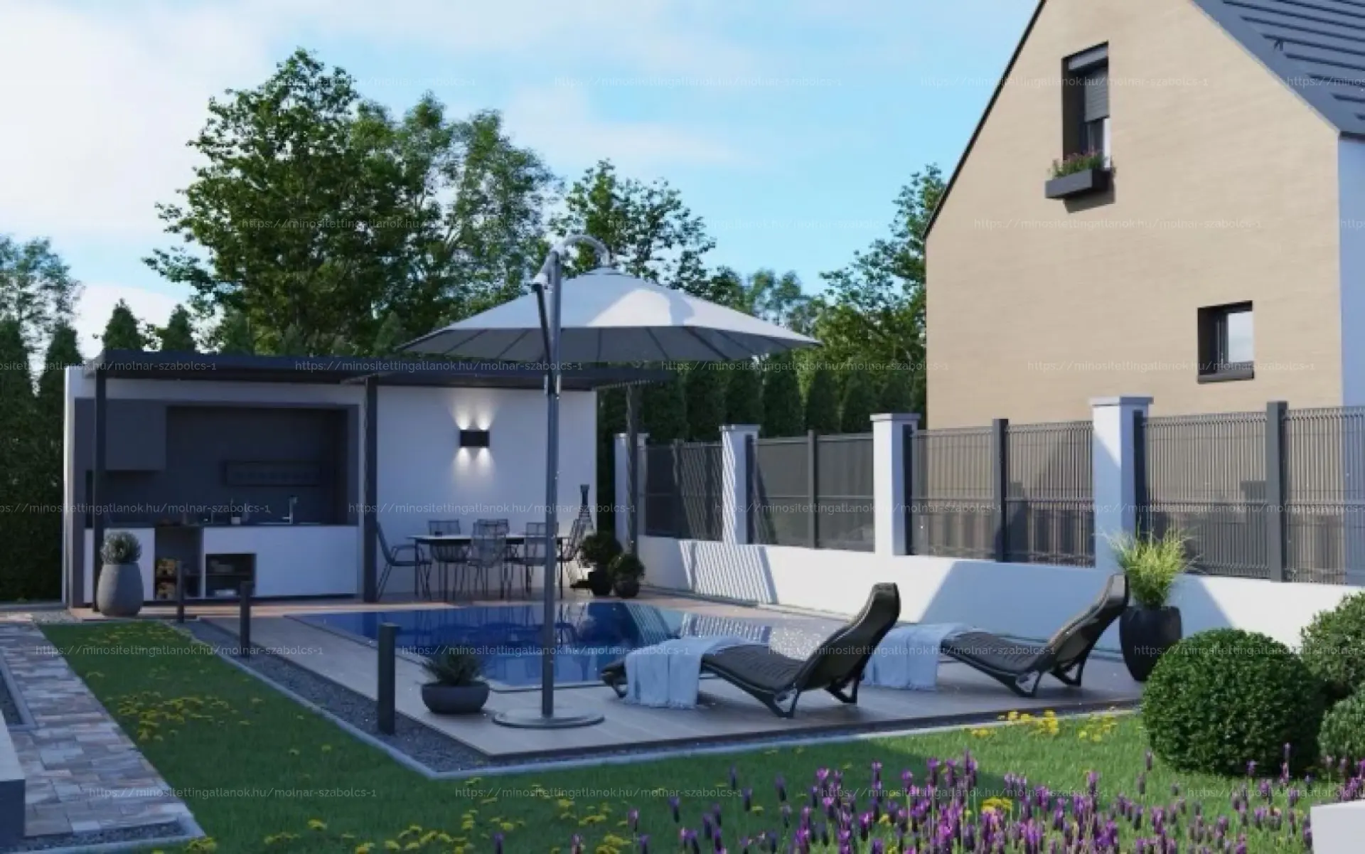 -Kültéri 3x8 m medence és esztétikus szaletli