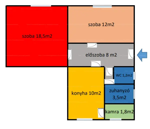 Az ingatlanban két szoba, konyha, előszoba, kamra, zuhanyzó, WC és közlekedő található A tégla lakásban van két szoba, konyha, előszoba, kamra, zuhanyzó, WC és közlekedő.