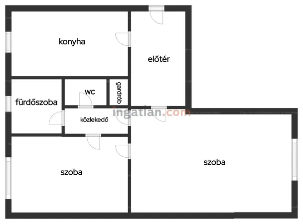 - Funkcionális, bérlőbarát elrendezés: külön WC, nagy tárolókapacitás (beépített szekrény + saját tároló)