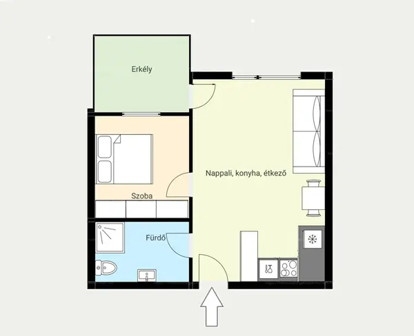 - amerikai konyhás nappali + 1 szoba