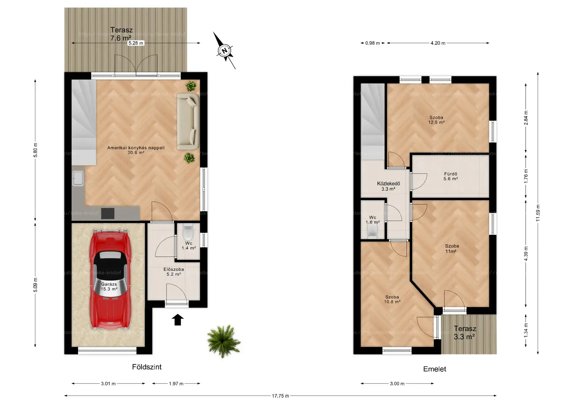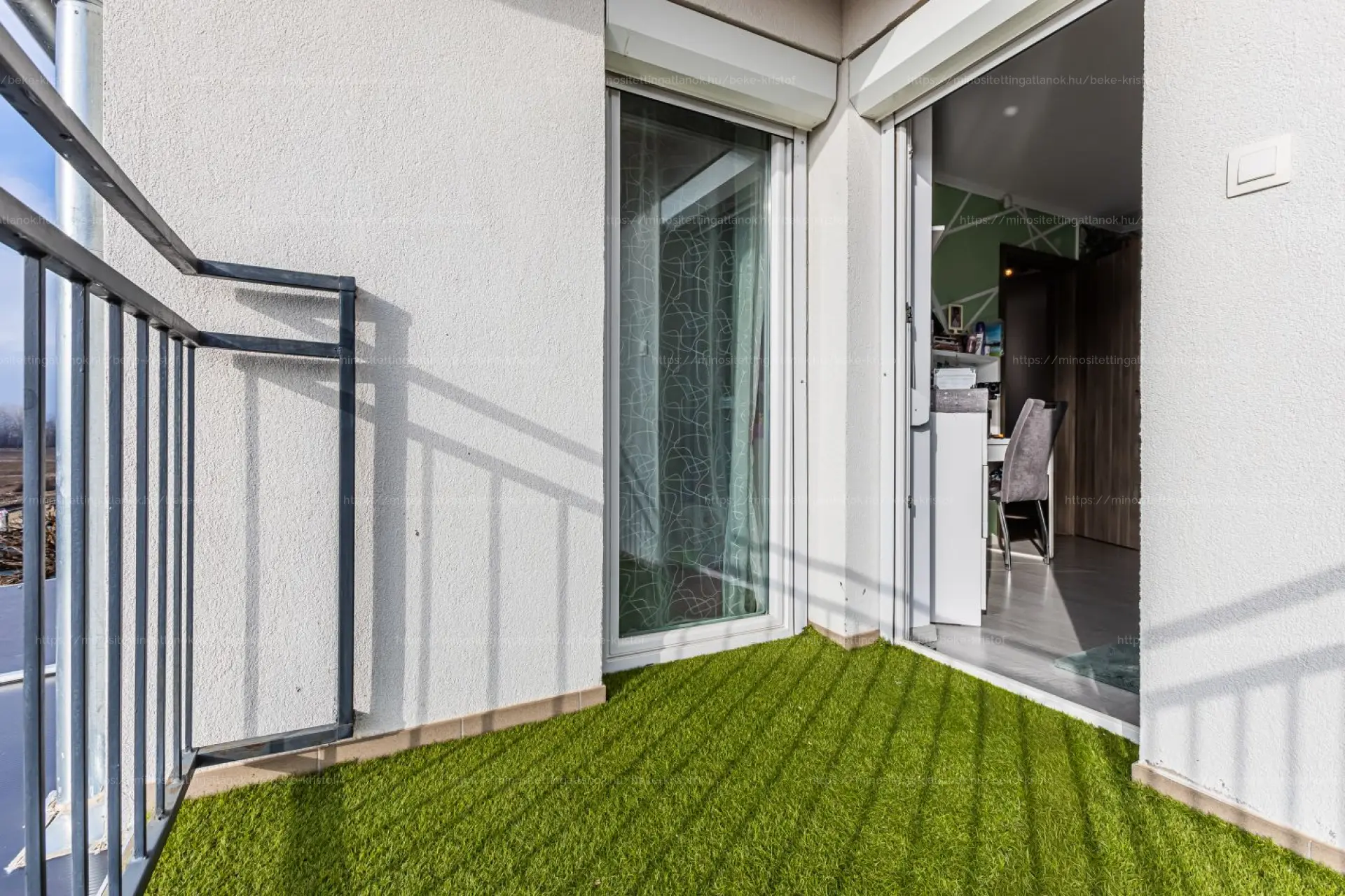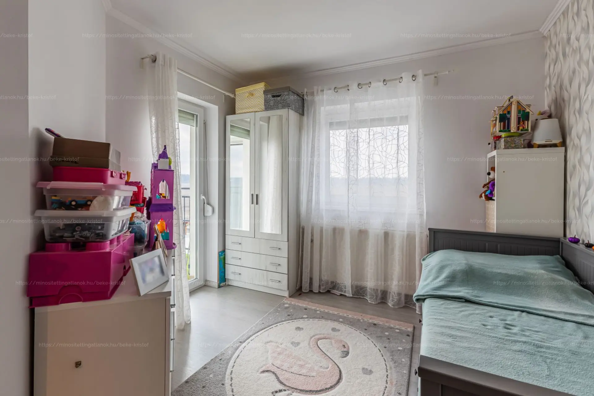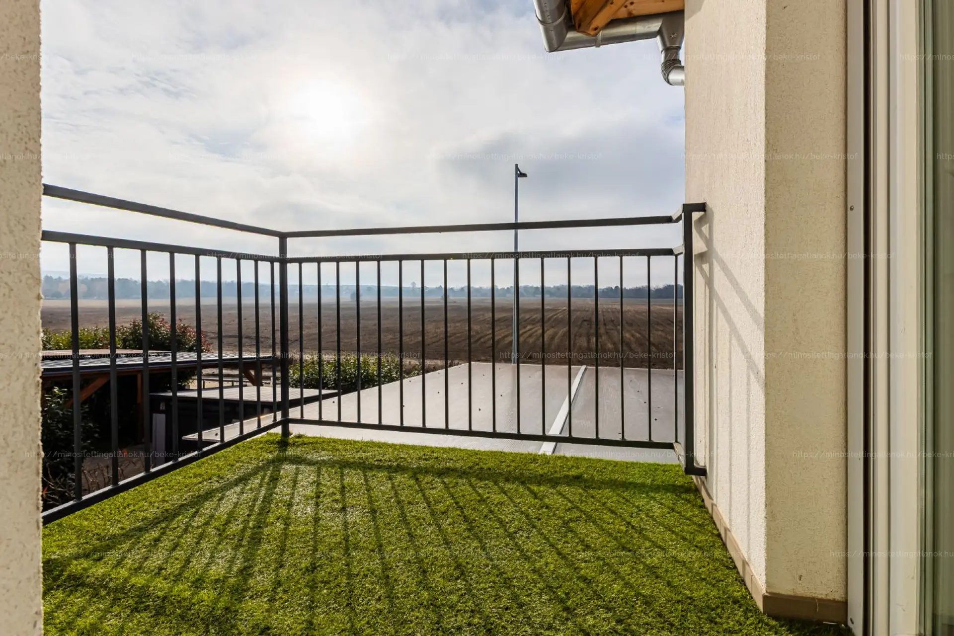 A ház 268 m2-s telken helyezkedik el. Az ingatlant parkosított és gondozott kert veszi körbe. A terület vízellátásáról fúrt kút, az öntözésről pedig automata rendszer gondoskodik. Az ingatlan központi helyisége, a 30 m²-es amerikai konyhás nappali és az innen nyíló 8 m²-es fedett terasz. A nagy üvegfelületek miatt a kinti és benti terek jól kapcsolódnak. Az alaprajz átgondolt, a helyiségek mérete és tájolása megfelelő. A terek tágasak, a ház körbenapozott. Az alsó és felső szint elkülönül, így a szülők nyugodtan pihenhetnek a földszinten, a gyerekek pedig az emeleten vagy a kertben vezethetik le fölös energiájukat. A biztonságról riasztó és kamerarendszer gondoskodik. Az ingatlan tulajdoni lapon csak 85 m2.