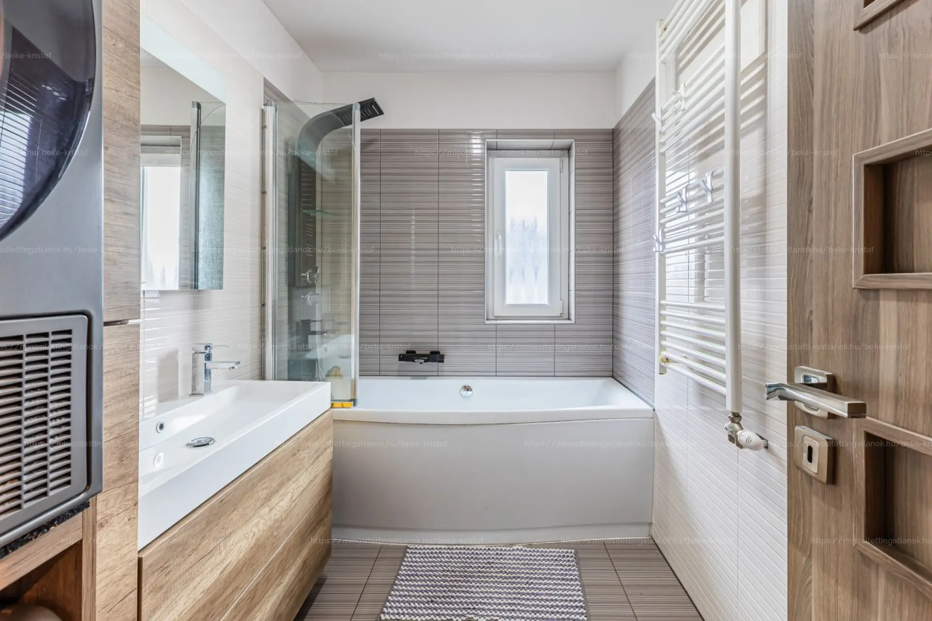 A modern és kiváló alapanyagokból épített ingatlan teljesen megfelel a kor követelményeinek. A 30 cm-es klíma tégla és az azon lévő 10 cm-es szigetelés garantálja az igen kedvező fűtési költségeket melyek éves szinten 120.000.-Ft-ot tesznek mindösszesen ki. Ehhez természetesen hozzájárul a 10 cm-es aljzat és a 20 cm-es födémszigetelés is. A szomszéd ingatlannal közös fal 40 cm vastag hanggátló téglából készült így nincs a lakások között áthallás.