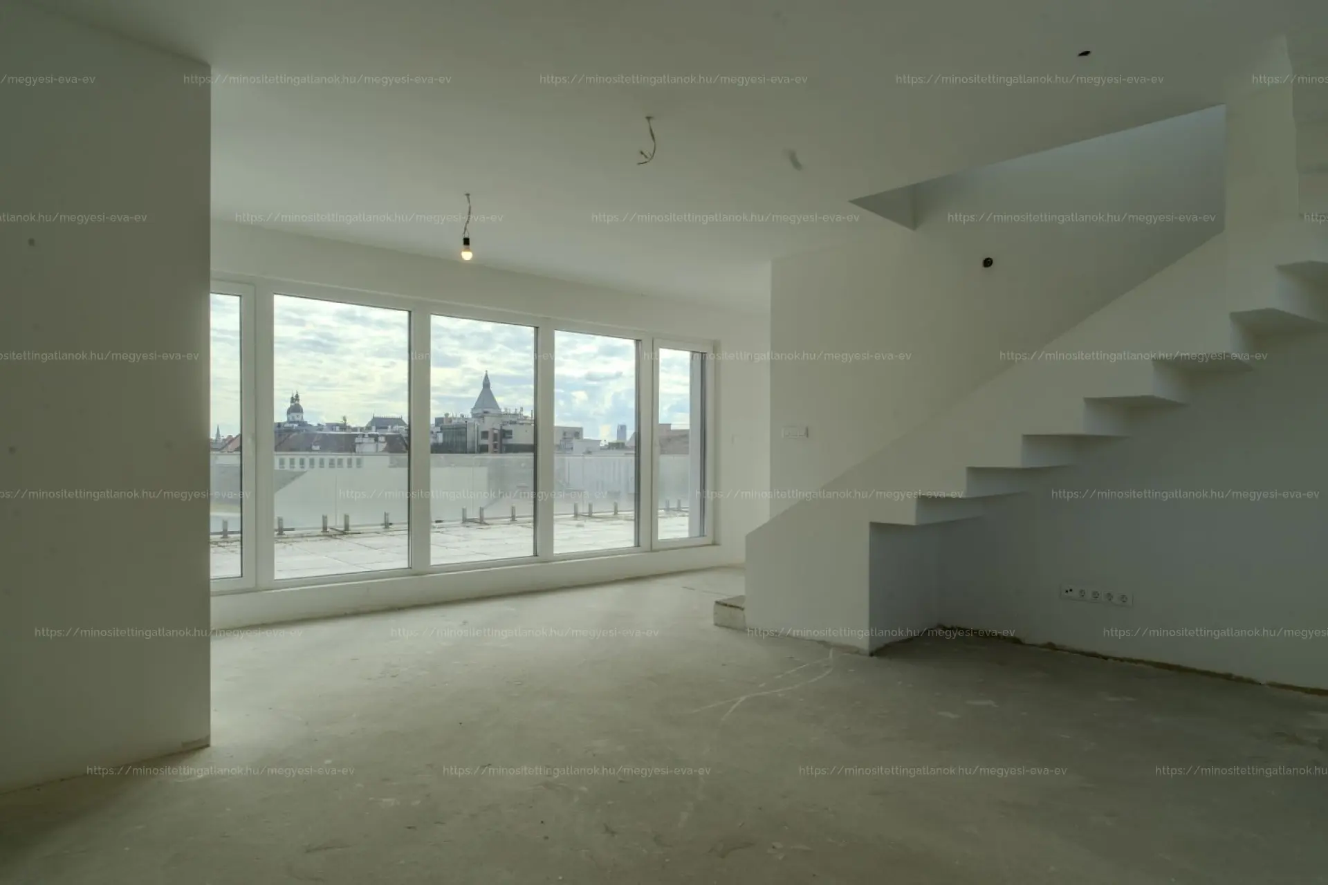 ELADÓ NÉGYSZOBÁS PENTHOUSE A BELVÁROSBAN — PANORÁMÁS, PRÉMIUM KIVITEL. Ára: 189,9M Ft.