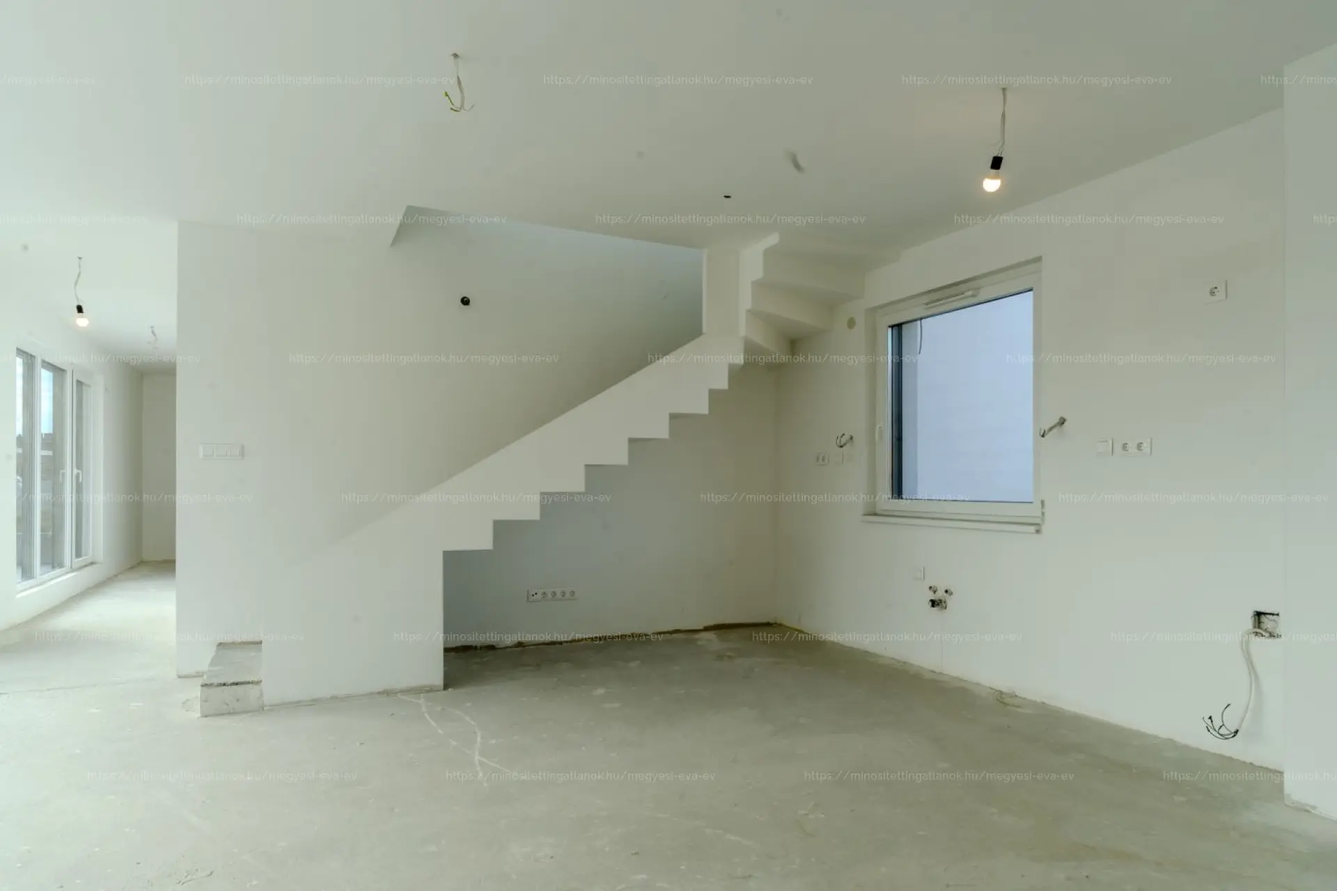 - Alsó szint: 80,5 nm + 8 nm erkély + 82 nm panoráma terasz (hasznos: 125,5 nm), előszoba, amerikai konyhás nappali, 2 szoba, fürdő, gardrób/háztartási helyiség.