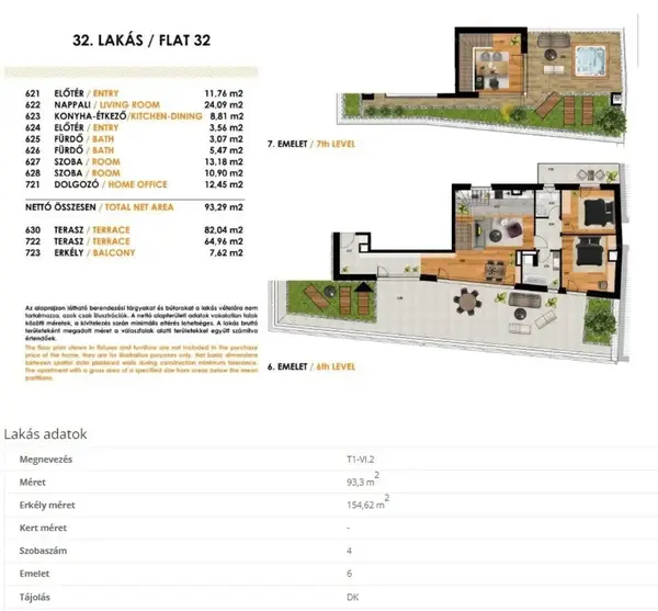 - Felső szint: 12,5 nm szoba + 65 nm rekreációs/kilátóterasz (hasznos: 45 nm).