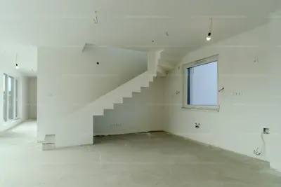 - Alsó szint: 80,5 nm + 8 nm erkély + 82 nm panoráma terasz (hasznos: 125,5 nm), előszoba, amerikai konyhás nappali, 2 szoba, fürdő, gardrób/háztartási helyiség.