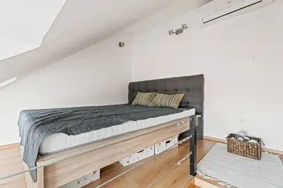 - 2 nagyméretű hálószoba álló galériával – a nagy belmagasságnak köszönhetően mindkét szoba kisebb rezidenciává alakult, külön nappali és hálórész is található bennük