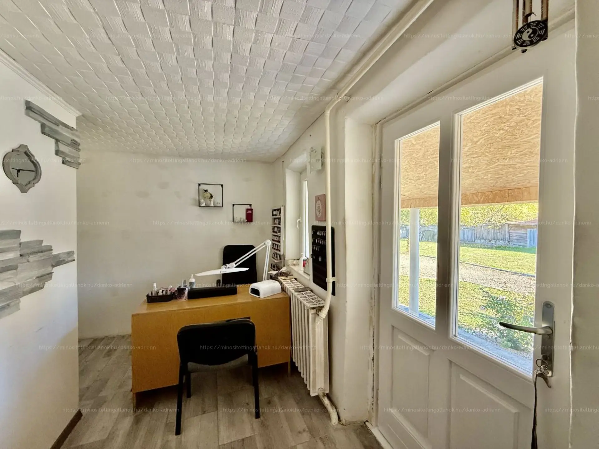 A hátsó bejáratnál ÜGYFÉLFOGADÁSRA ALKALMAS IRODA, külön fürdővel. Így könnyedén megvalósítható a egybefonódó munkahely és lakhatás vagy a KÉTGENERÁCIÓS ÉLETTÉR.