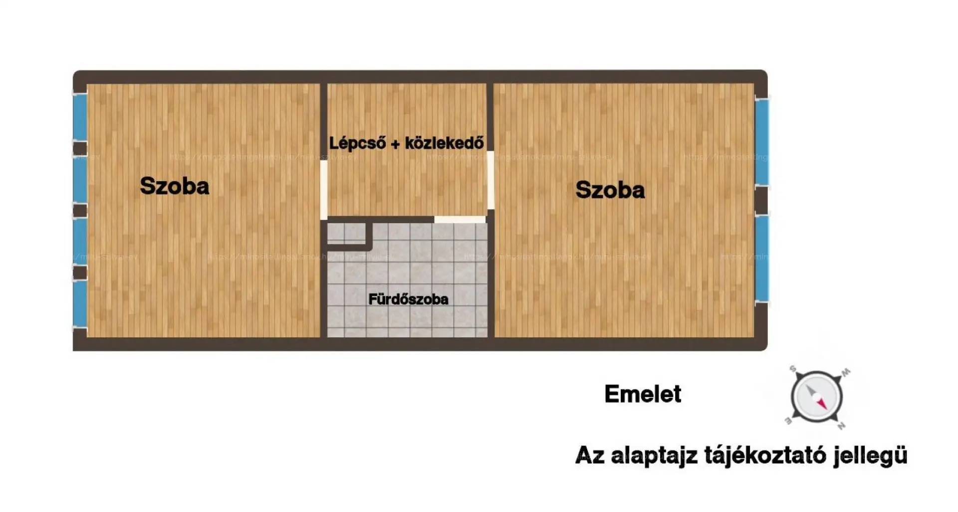 A földszinten található a TÁGAS nappali, világos konyha étkezővel, külön mosdó és egy PRAKTIKUS tárolóhelyiség. Az emeleti szinten két NAPFÉNYES, barátságos hálószoba és egy kényelmes fürdőszoba szolgálja a mindennapi kényelmet. A fűtést GÁZCIRKÓ biztosítja, a belső hő- és hangszigetelést KÉT RÉTEGŰ MŰANYAG NYÍLÁSZÁRÓK adják, így ENERGIATAKARÉKOS megoldást nyújt.
