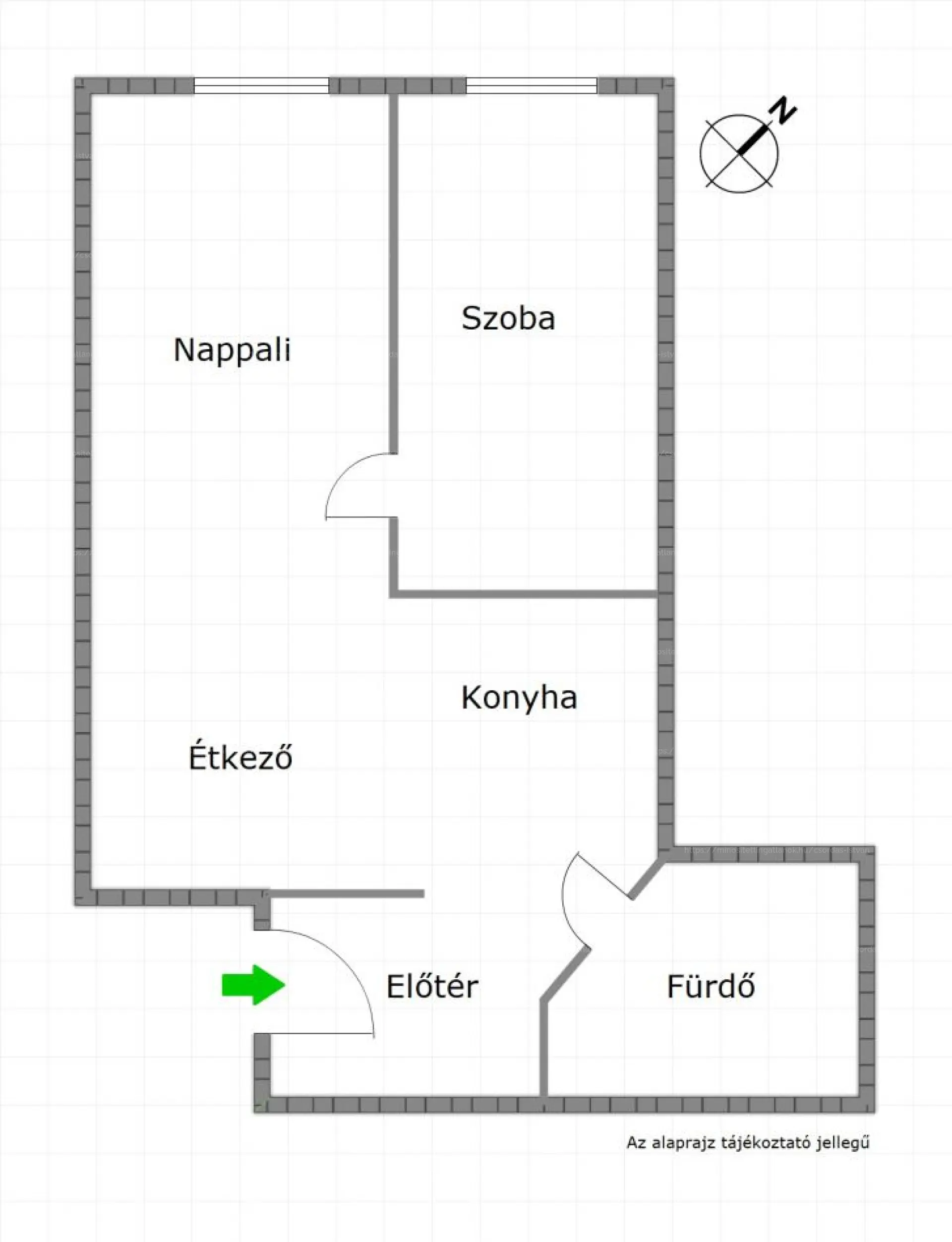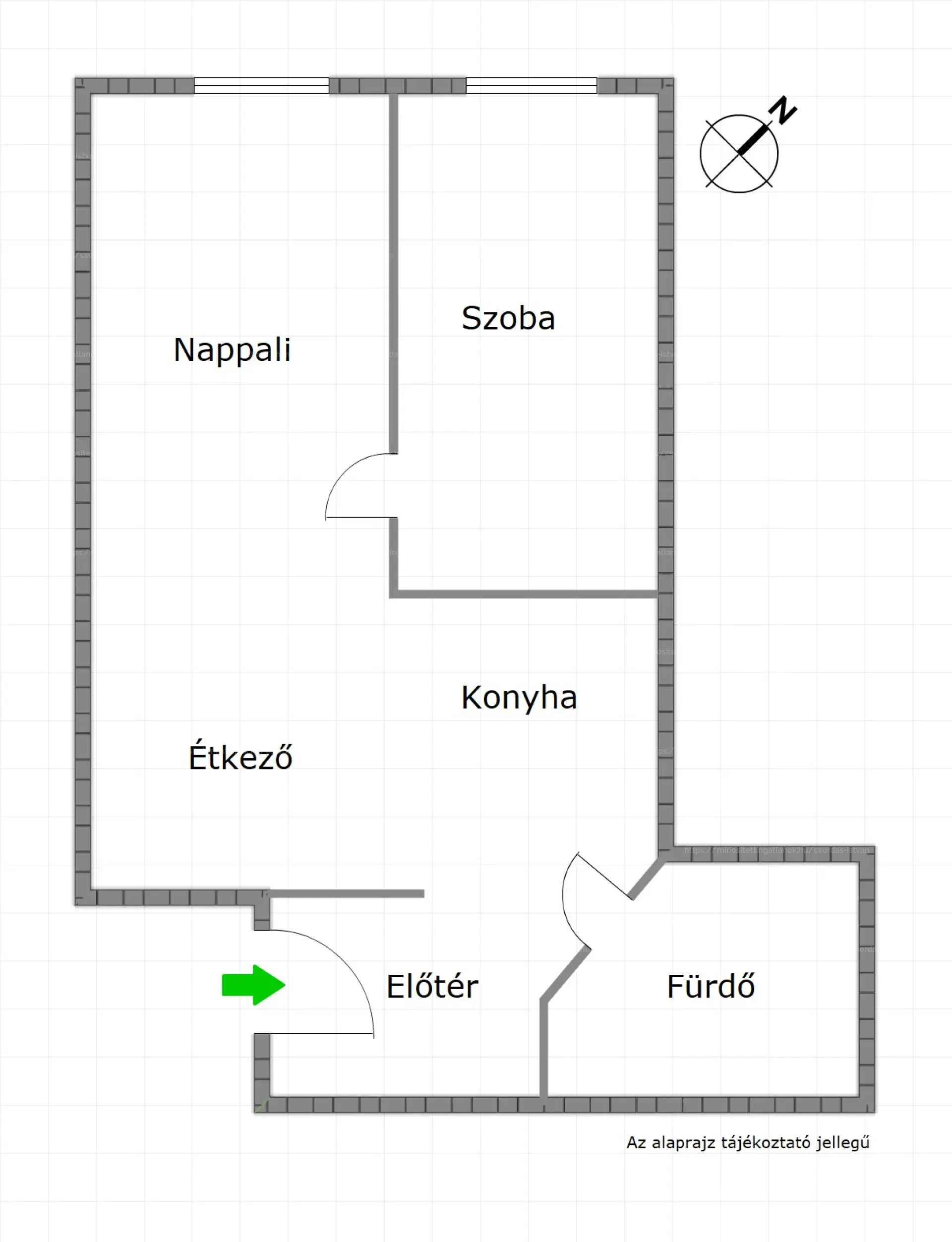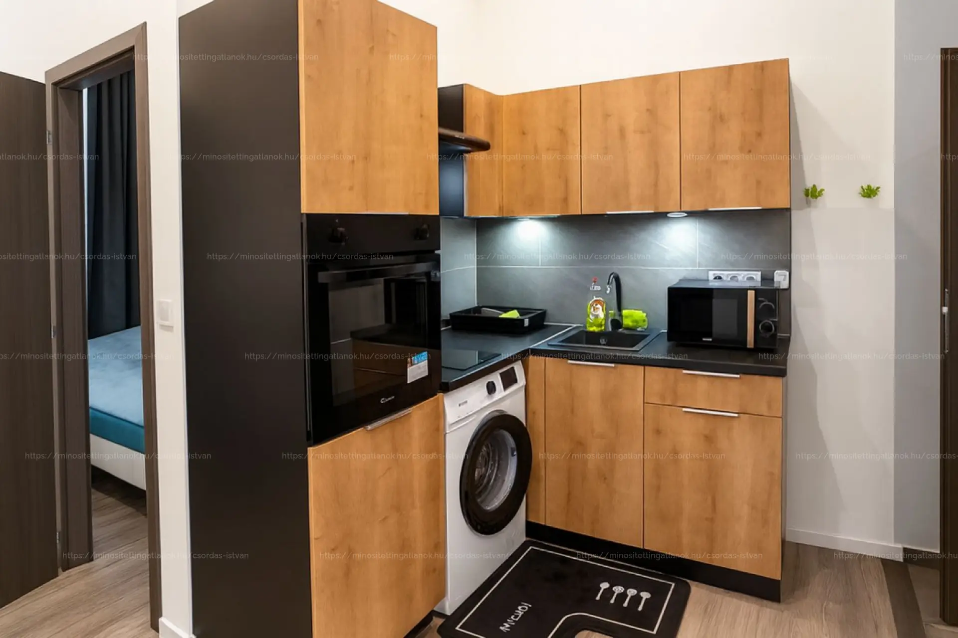 kis nappali, háló, étkező, konyha, fürdőszoba.