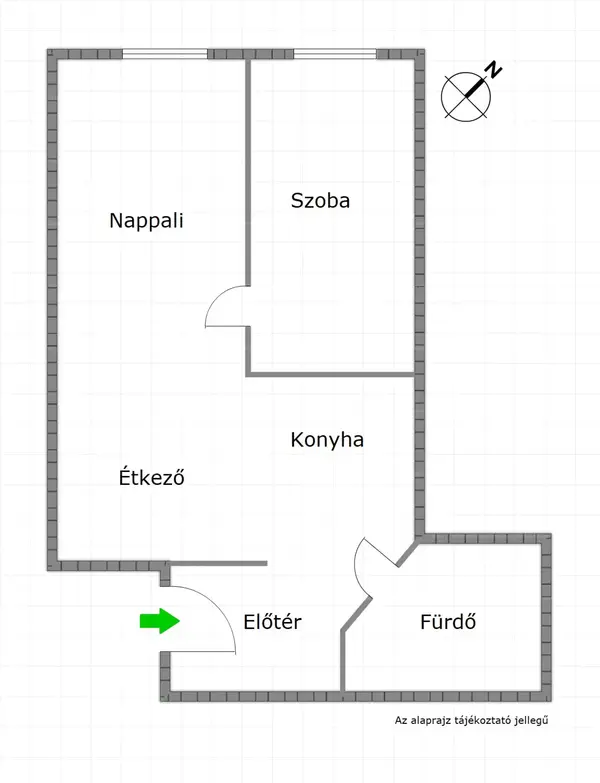 kis nappali, háló, étkező, konyha, fürdőszoba.