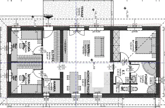 Tágas nappali–étkező–konyha, minőségi, gépesített konyhabútorral