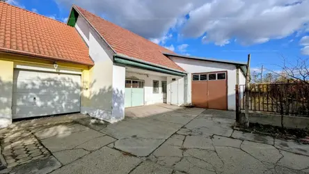 Széles utcafrontú, 1830 m2-es telekre téglából épült a 175 m2-es ház. Előszoba, 4 egész és 1 fél szoba, hall, tágas étkező-konyha, 2 kamra, fürdőszoba, közlekedő, háztartási helyiség, nyárikonyha és 2 külön WC alkotja. A ház egy része alatt 10 m2-es száraz pince található. A belső tereket jól kihasználható 16 m2-es, kitekerhető napellenzővel épült terasz egészíti ki, valamint nagy, 25.5 m2-es garázs.