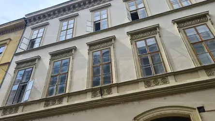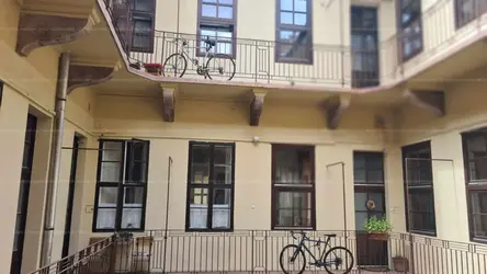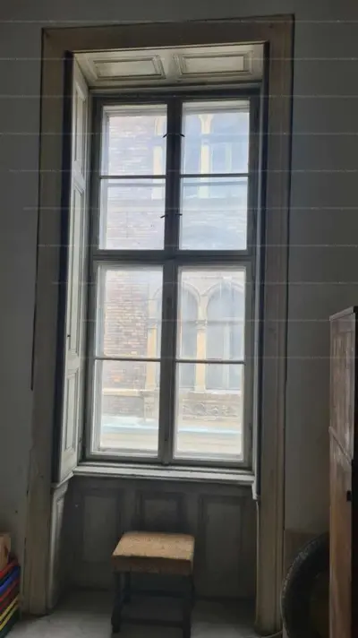 A társasház századfordulós, 3 szintes, műemlék jellegű épület, átlagos állapotú, lift nélküli, összesen 17 lakásos, kis létszámú közösséggel. A lakás ablakai egy CSENDES, kis forgalmú utcára néznek; a nyílászárók fakeretes, spalettás kivitelűek.