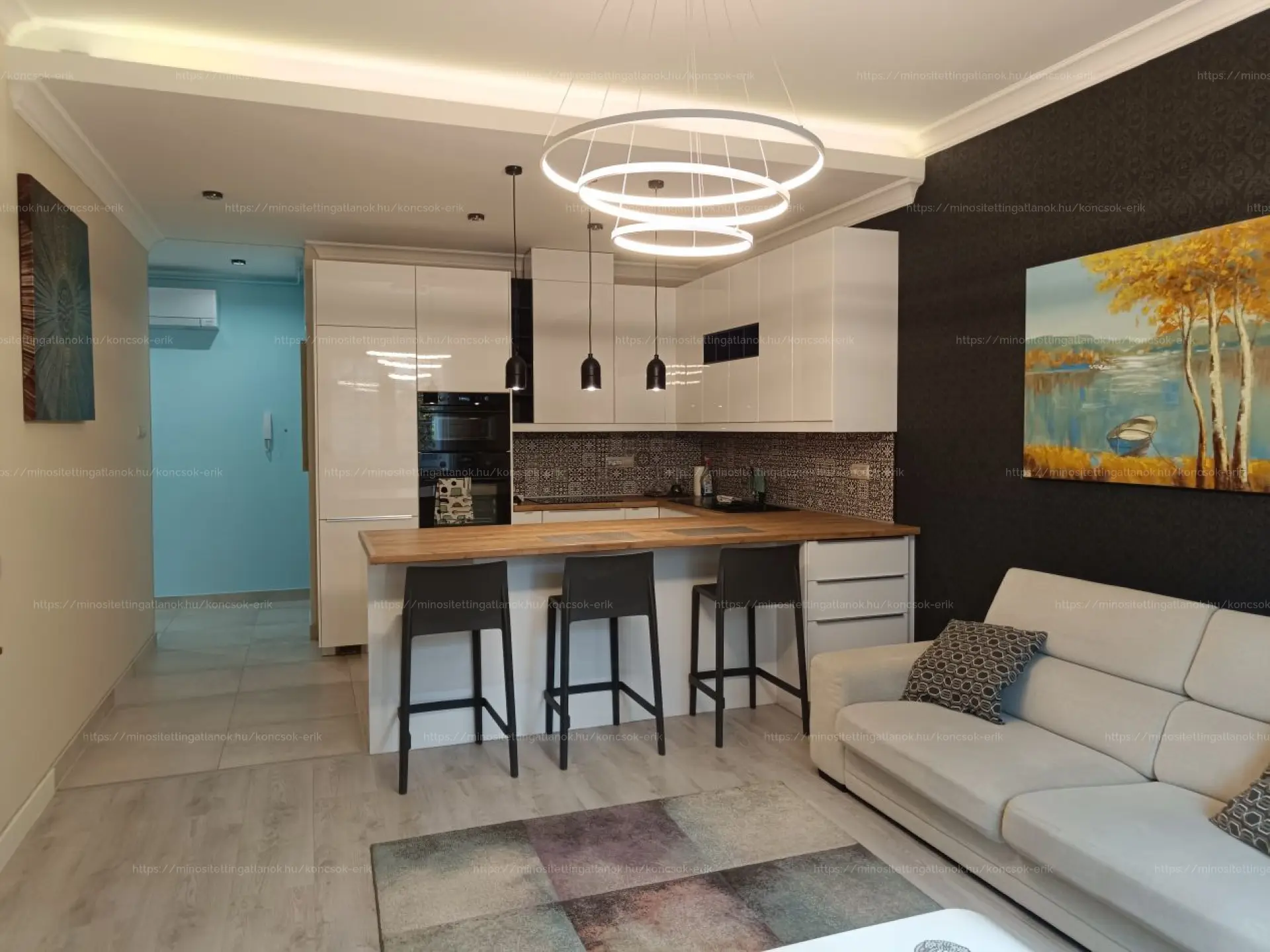 A lakás hat éve teljes körű felújításon esett át, így műszakilag és esztétikailag is kifogástalan állapotban van. Az amerikai konyhás nappali modern és tágas központja az otthonnak, a két külön nyíló szoba pedig ideális elrendezést biztosít akár család, akár párok vagy home office számára.