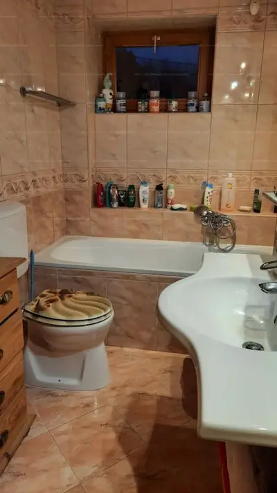 Jól felszerelt otthon: Alsó szinten konyhakapcsolatos nappali, fürdőszoba WC-vel, külön toalett és spájz. Emeleten hálószobák, WC és fürdőszoba.