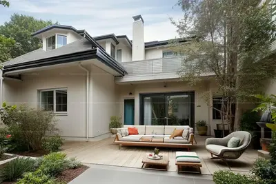 A ház szerkezetileg önálló épület, jogilag a szomszédos társasházhoz tartozó albetét (társasházi lakás).
