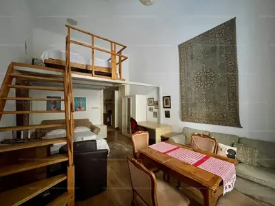 Kivételes lehetőség az I. kerület szívében! Eladó egy 40 m² alapterületű + 12 m² állógalériás, 2 szobás, 1. emeleti lakás, mely egy 1867-ben épült, patinás polgári házban található.