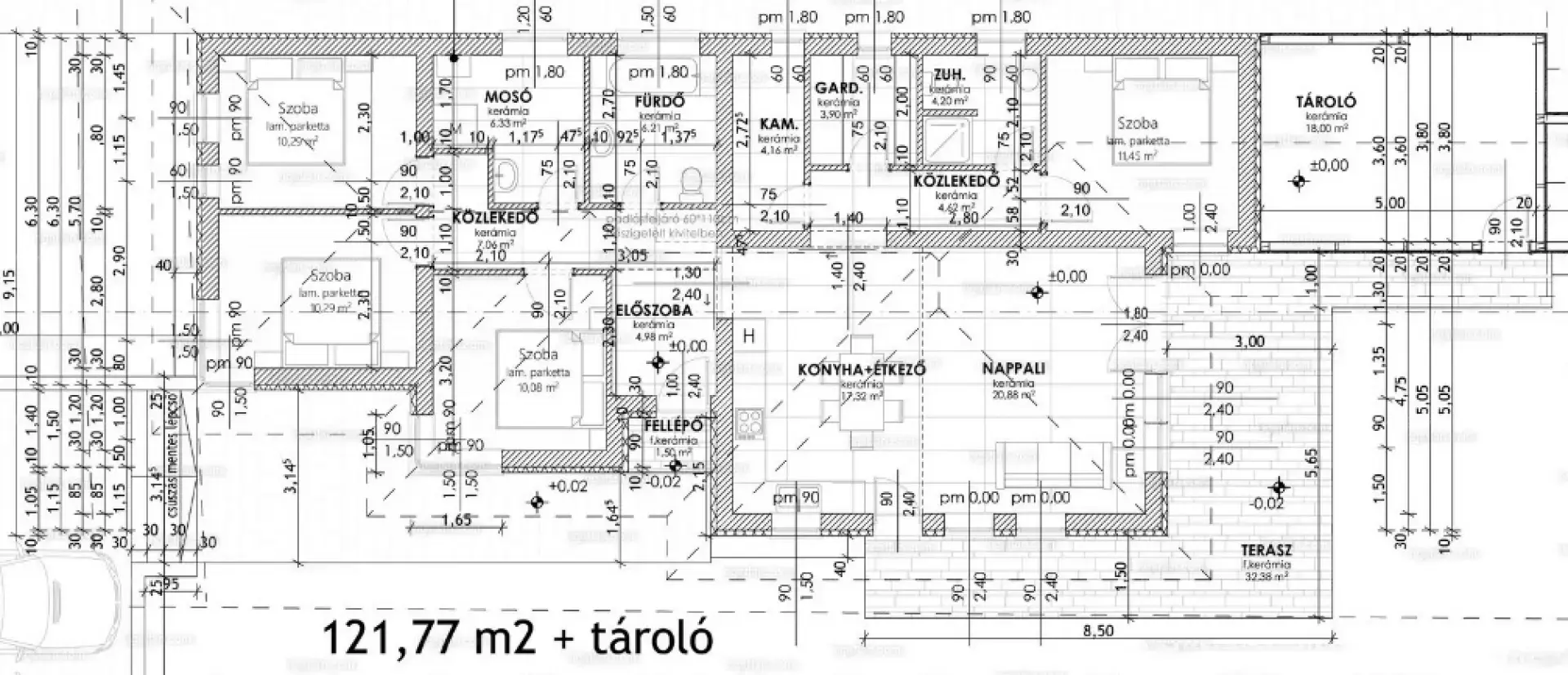 - +23 m² fedett autóbeálló