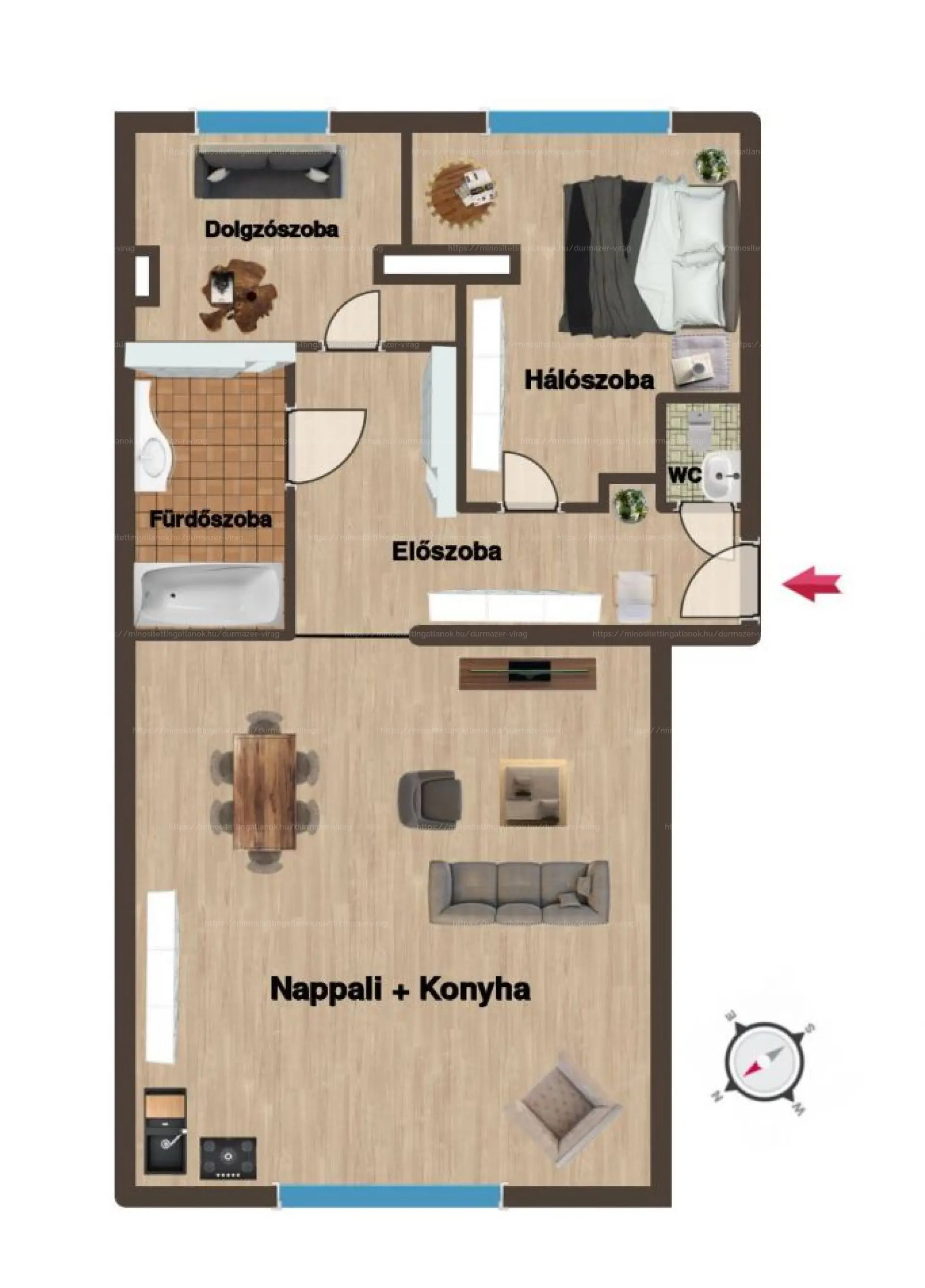 Dolgozó-/gyerekszoba + hálószoba (nagy beépített szekrénnyel)