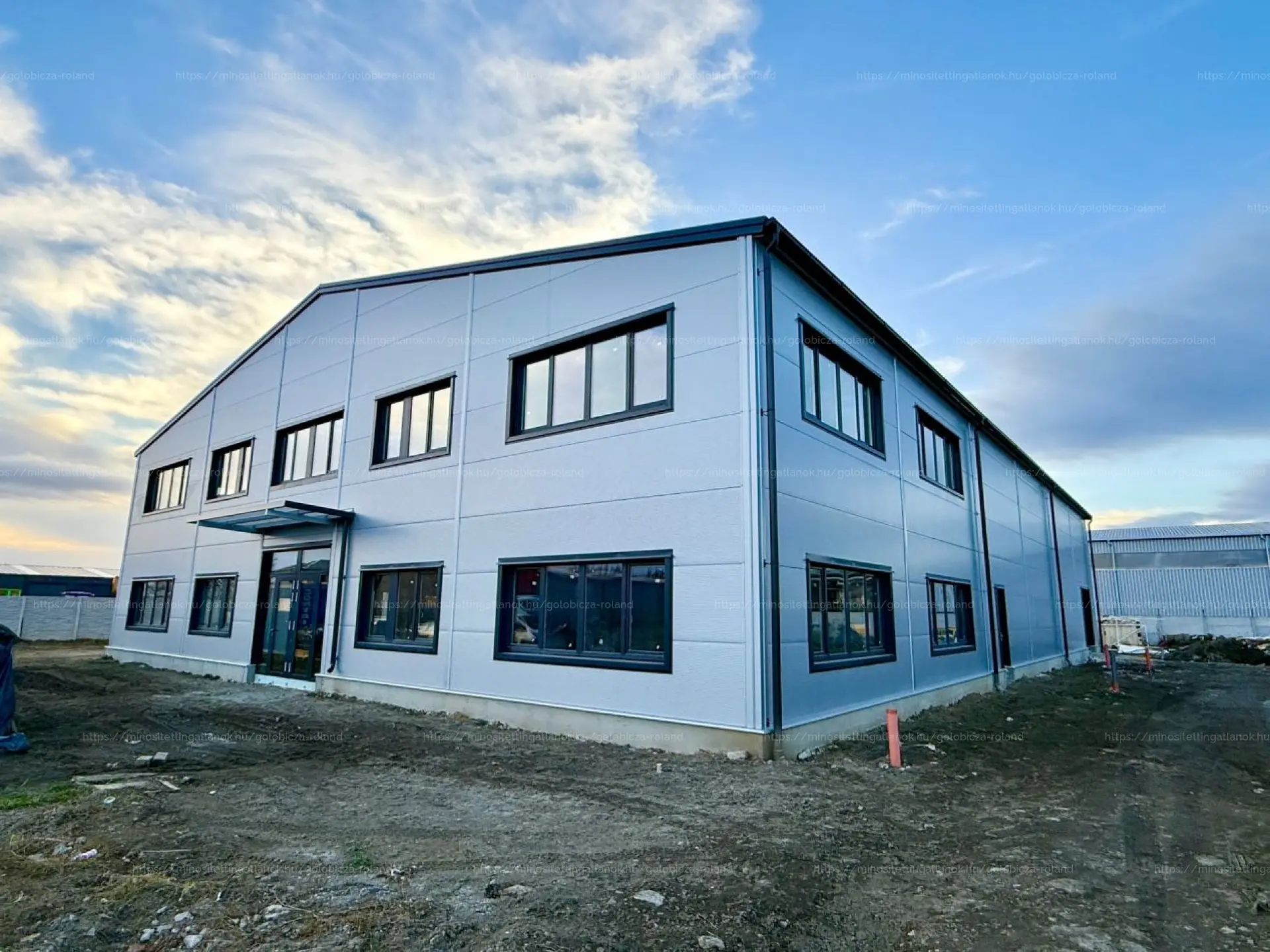•Csarnok acélszerkezet, 12 cm vastag szendvicspanel, 6M magas.