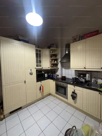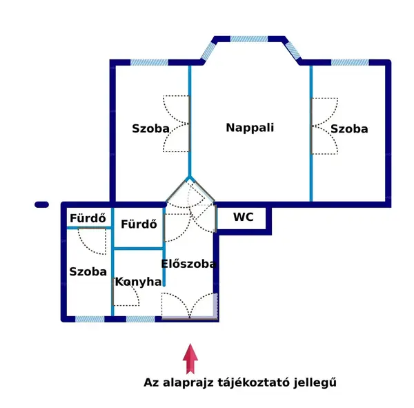 A bejáratnál elhelyezkedő konyha nappaliba történő átmozgatásával., az itt tallható szoba összenyitásával könnyedén 4 egész szobás lakás alakítható ki.