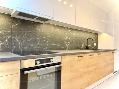 •Egyedi tervezésű, gépesített konyhabútor (sütő, főzőlap, szagelszívó, mosogatógép, mosógép, fagyasztós hűtő)