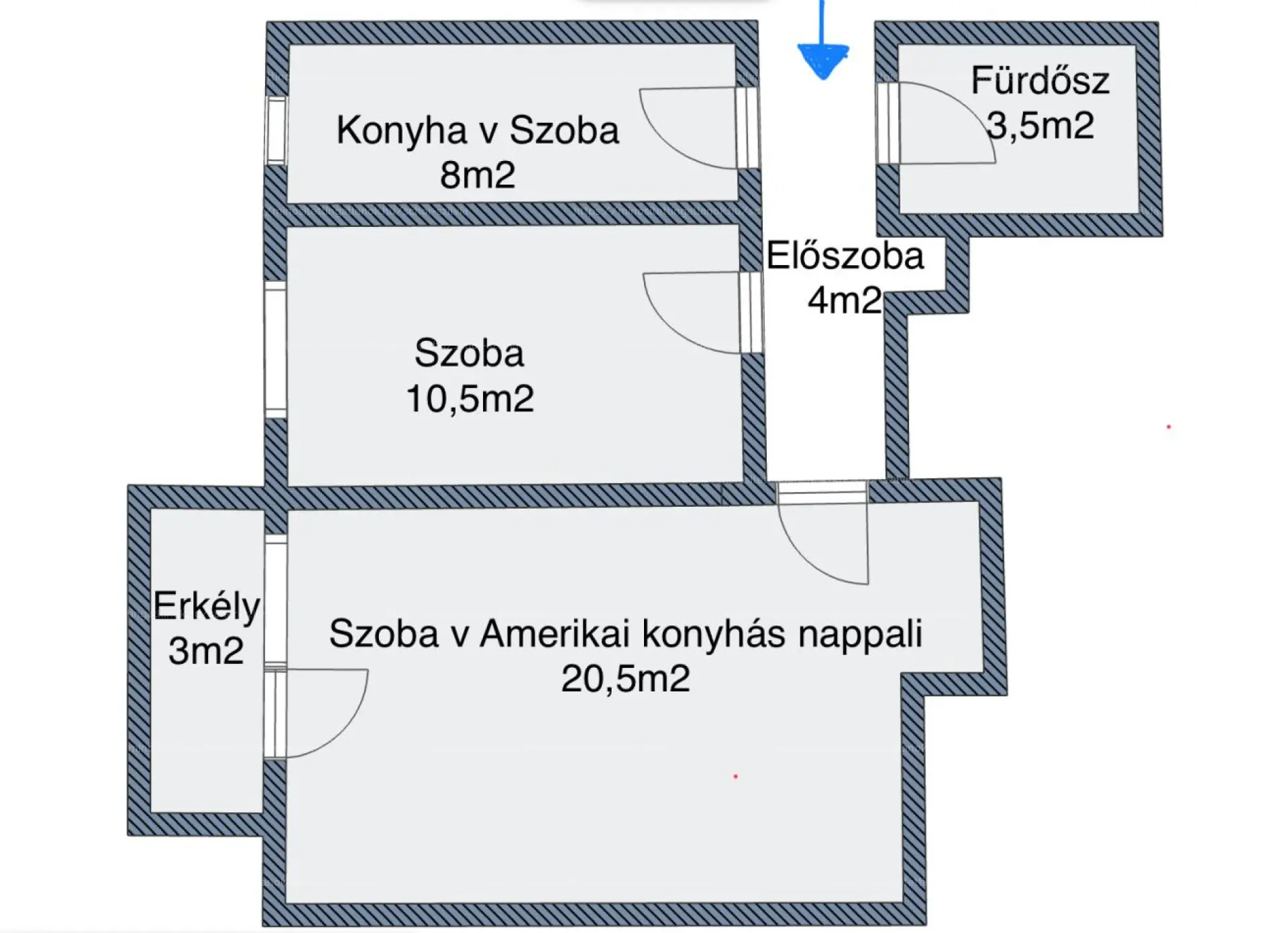 ⭕️ Az alaprajz valós méretarányú, a helyiségek jelenleg teljesen lecsupaszított állapotában vannak.