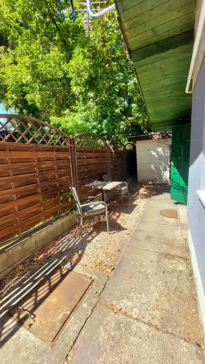 A hangulatos villaház bejáratától legtávolabb található a lakás, így az őt körbeölelő kis udvar rész is szabadon használható.