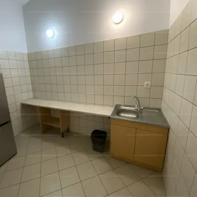 Felújított, jól szervezhető csarnoktér, kis konyha, öltöző, mosdók, textilraktár, takarító- és karbantartó-bázis kialakításához.