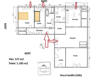 • Önálló, gépesített konyha, 2 ablakos kamrával