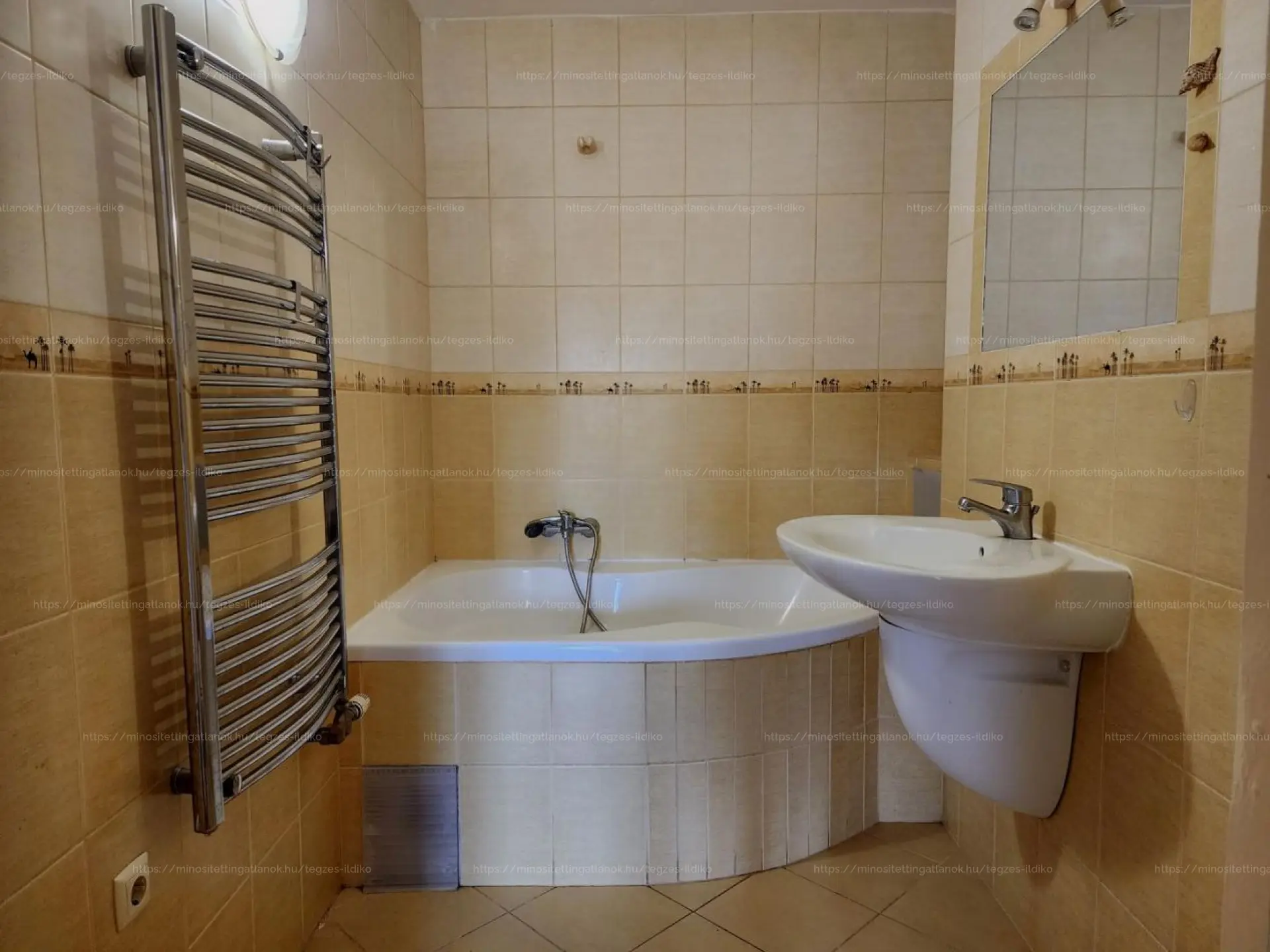 ✅ A két szobában laminált lapos a padlóburkolat, a többi helyiségben kerámia.