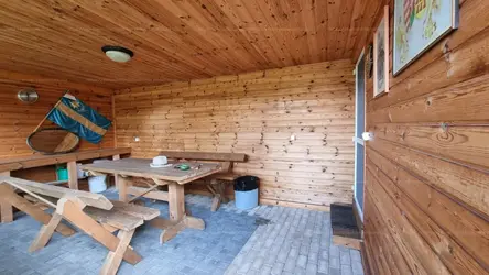 A telken található egy stabil szerkezetű, kétszintes, szigetelt gerendaház, amely akár hétvégi háznak is kiváló, valamint egy szerszámos tároló is rendelkezésre áll.