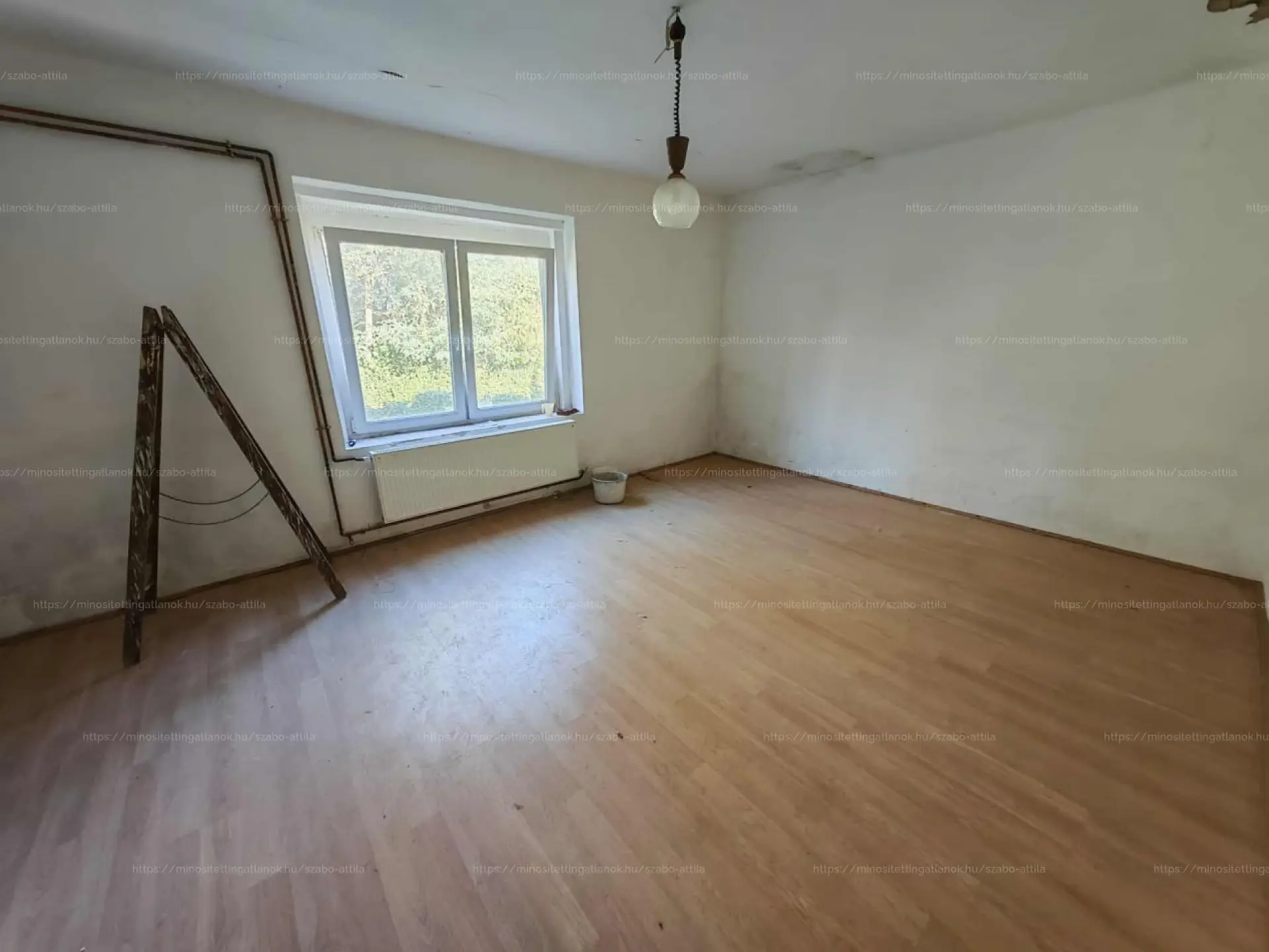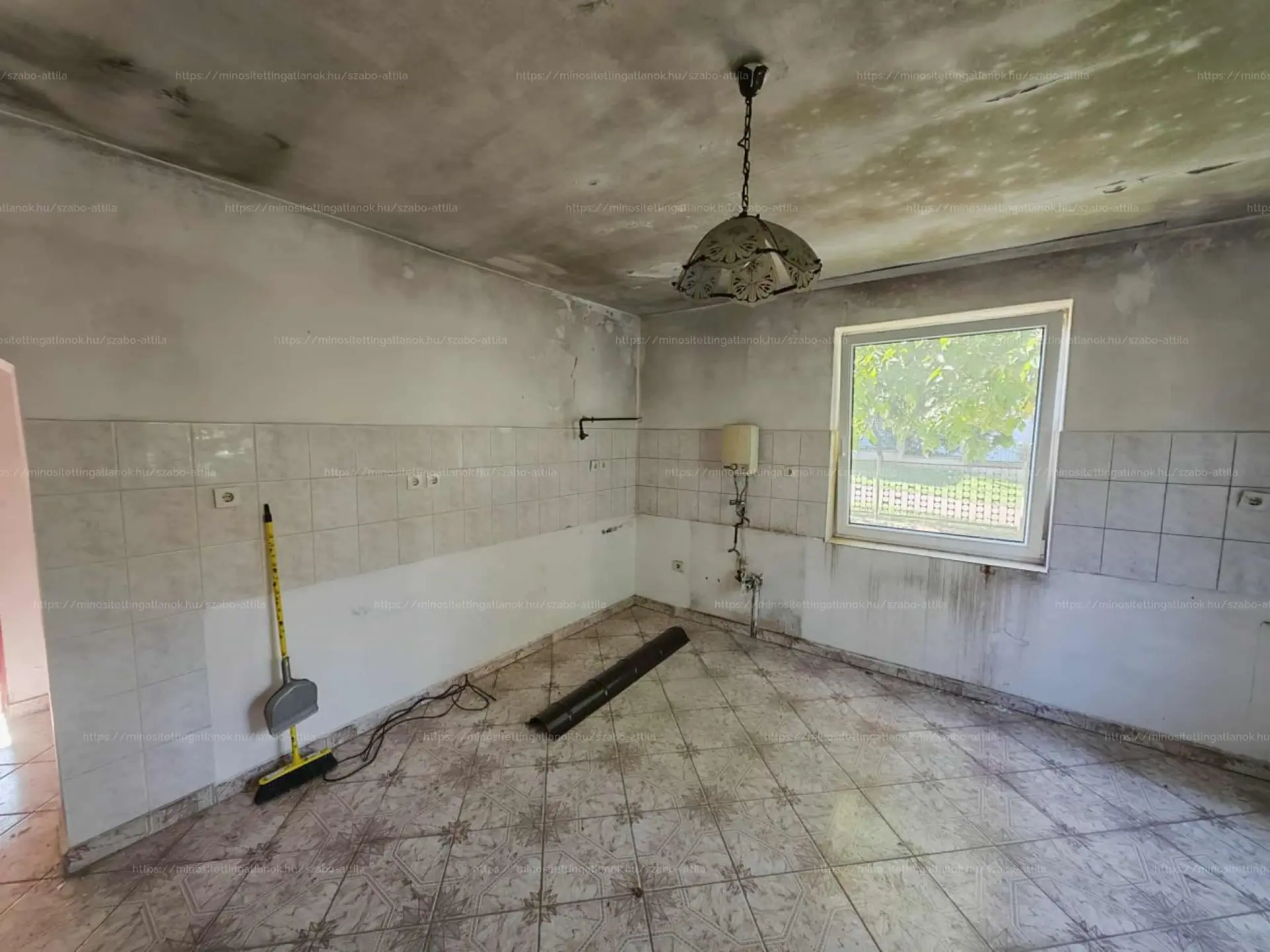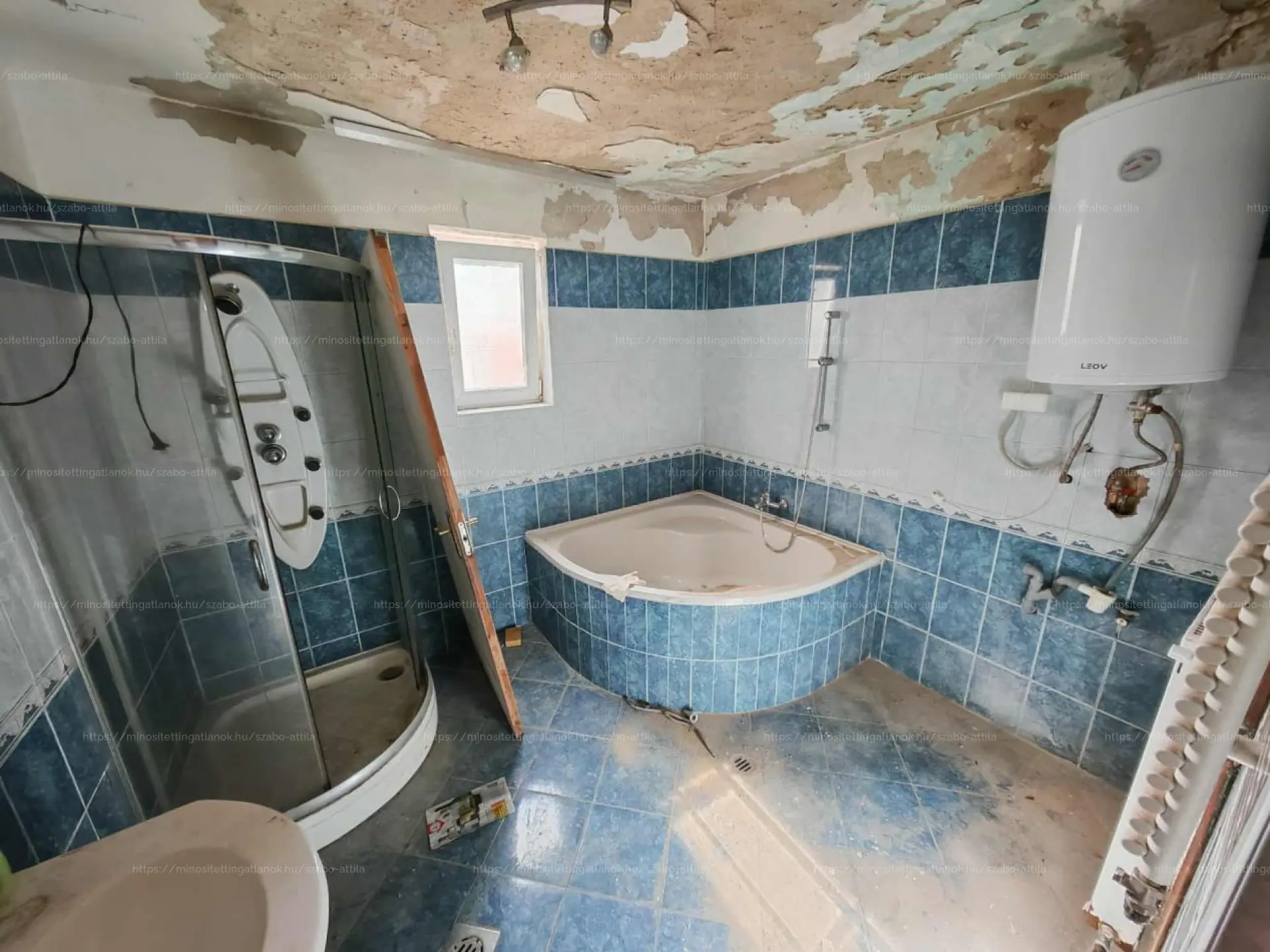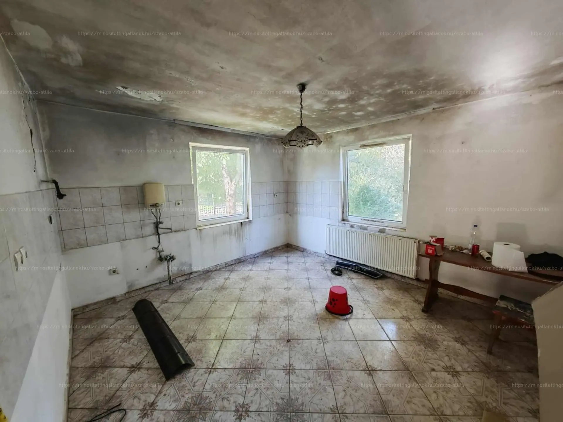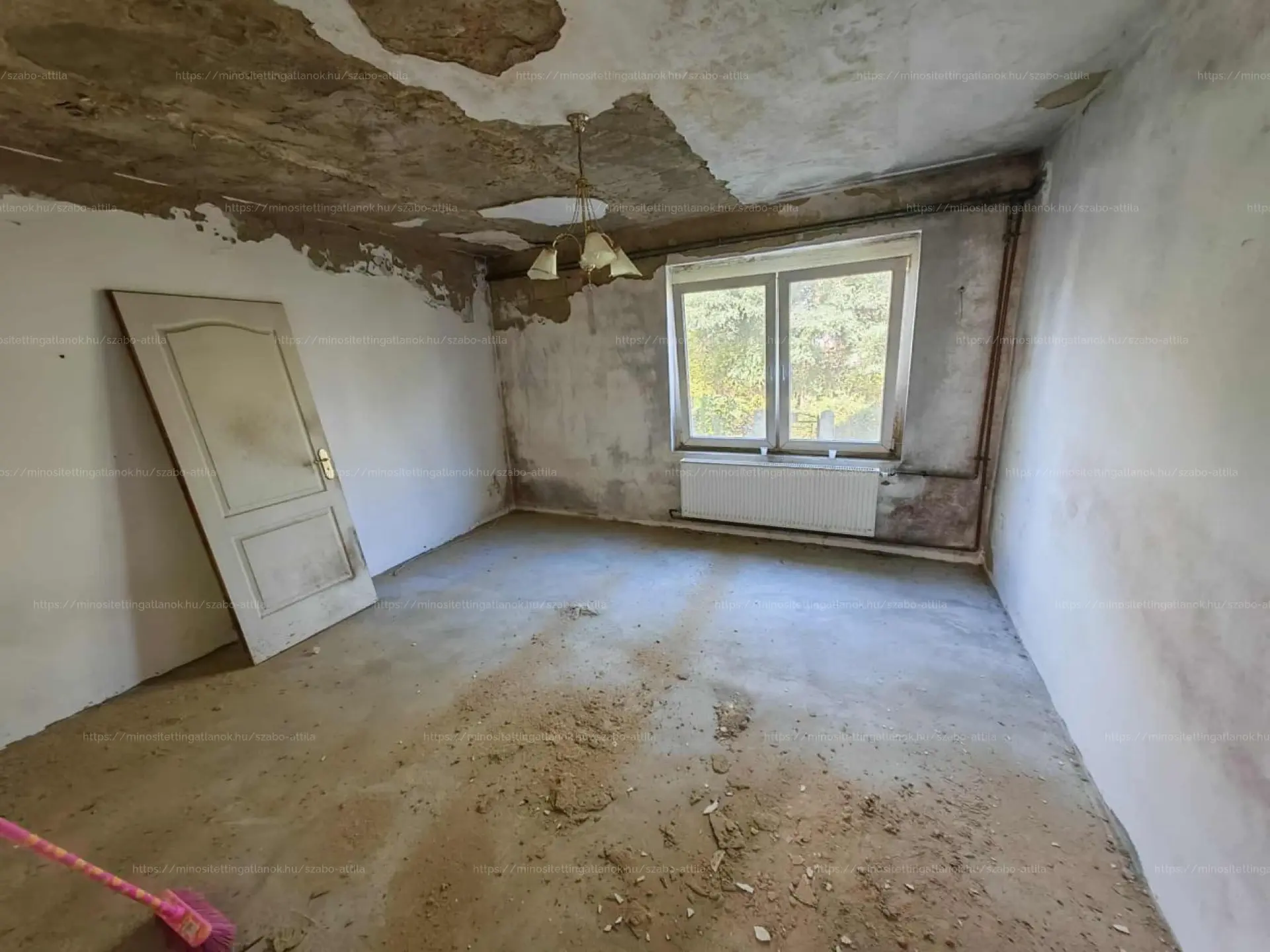 Korábban beázás történt, amely a tetőszerkezet javítása előtt keletkezett — ezt és egyéb korszerűsítési munkákat figyelembe véve az ingatlan felújításra szorul.