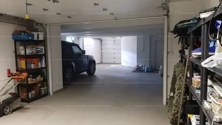 A lakószint alatt, a 250 m2-es félszuterén szinten kapott helyet az 5 állásos garázs, ahol elektromos töltőállomás is található. Itt található a kazánház, egy közel 40 m2-es háztartási helyiség, valamint a fitnesz terem SZAUNÁVAL, valamint a MOZISZOBA az otthoni kikapcsolódáshoz.