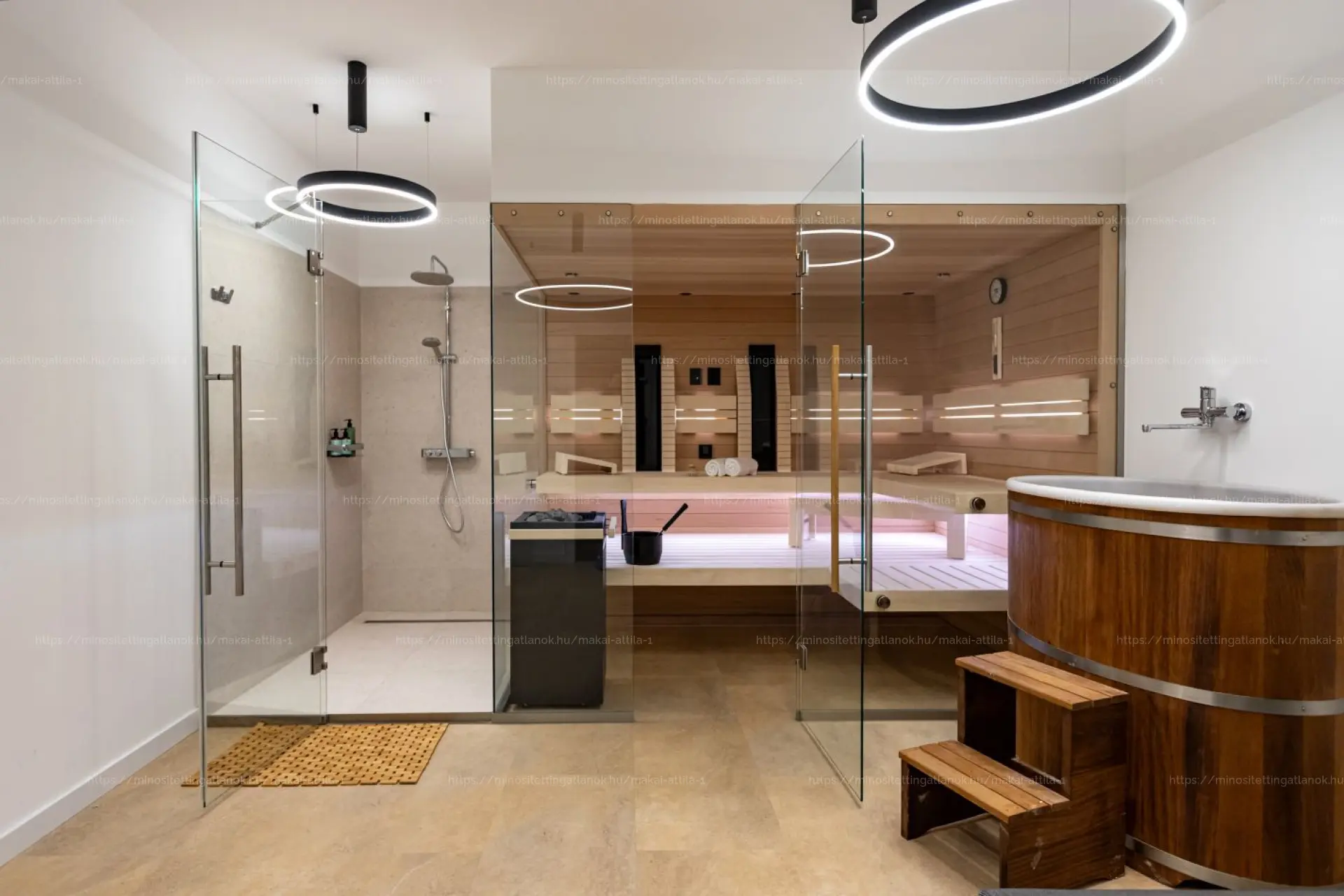 ✨ Beltéri wellness (6 személyes szauna, dézsa, tusoló, pihenőrész)