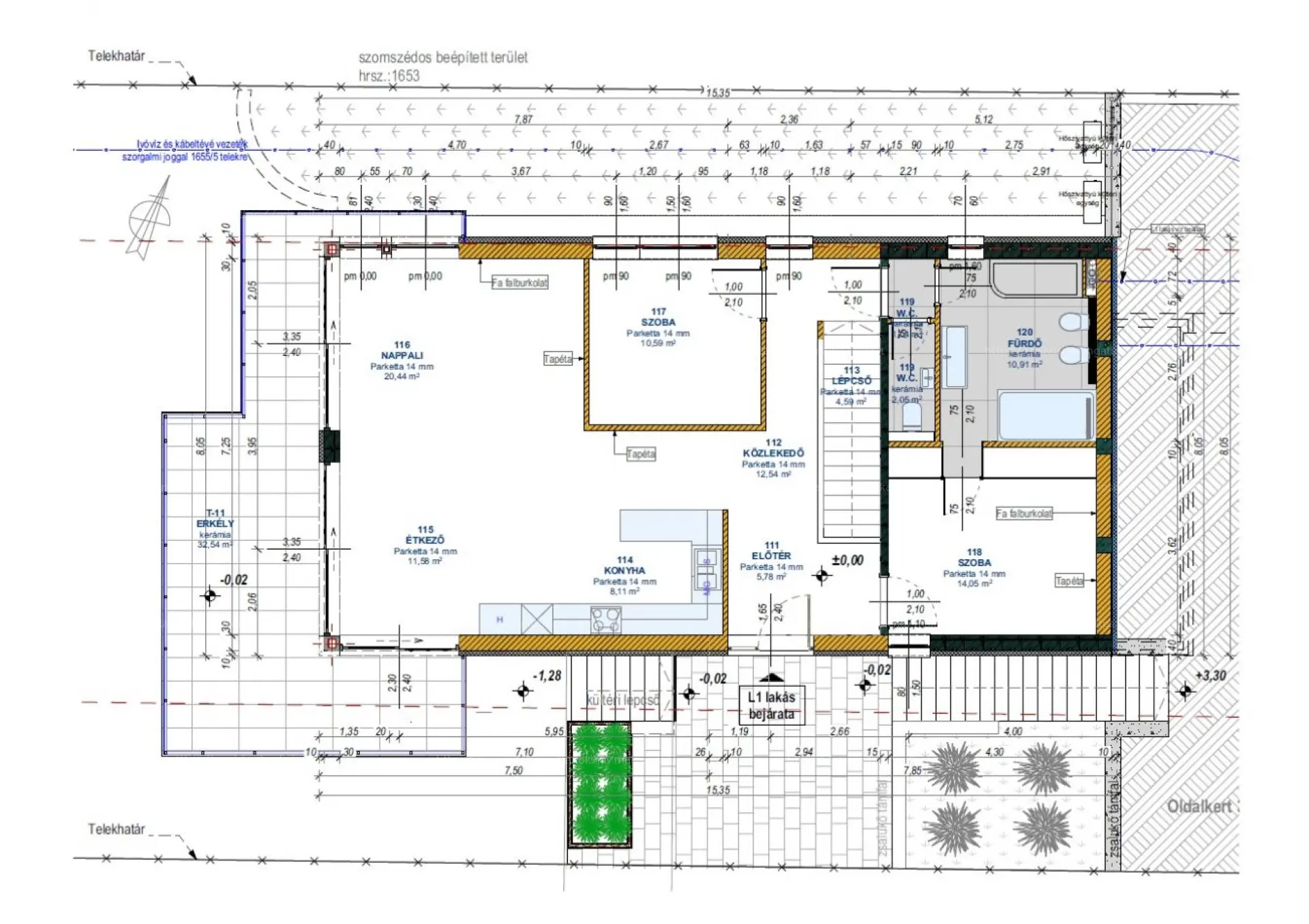 A dokumentáció – belsőépítészeti tervek, gépészeti lista, garanciák – teljes körűen rendelkezésre áll.
