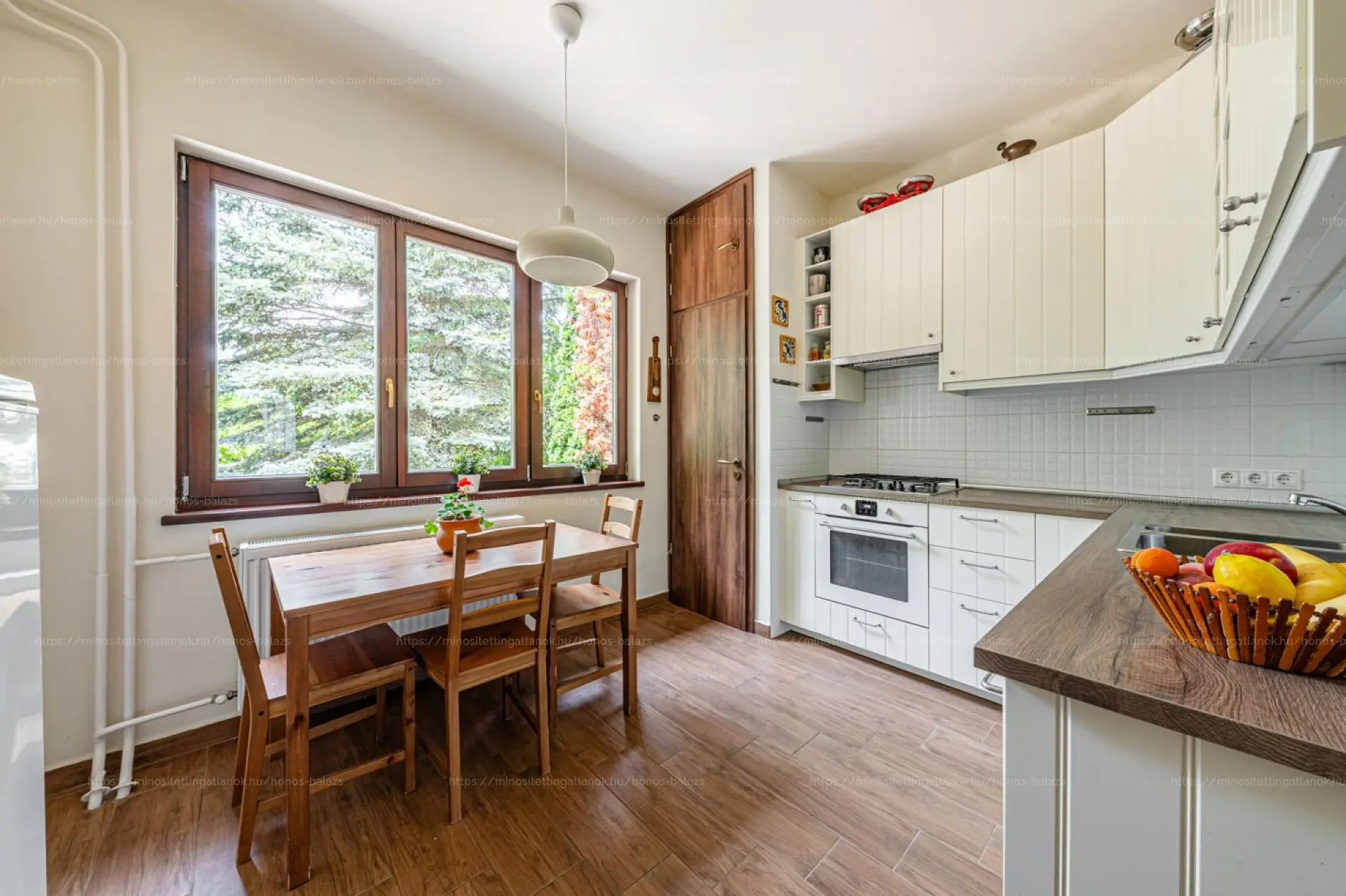 Budakeszi kedvelt kertvárosi részén, nyugodt zöldövezeti környezetben eladó egy felújított, kifogástalan állapotú, önálló 240 nm-es családi ház, sík, jól használható 1352 nm telekkel.