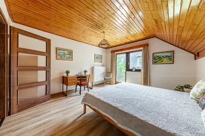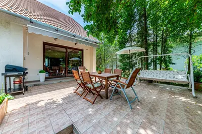 Az ingatlan csendes, egyirányú utcában található, barátságos szomszédsággal és közvetlen természetközeli hangulattal. A telek mögött természetvédelmi terület húzódik, így a kilátás erdőre és rétre nyílik.