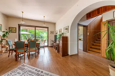 Budakeszi kedvelt kertvárosi részén, nyugodt zöldövezeti környezetben eladó egy felújított, kifogástalan állapotú, önálló 240 nm-es családi ház, sík, jól használható 1352 nm telekkel.