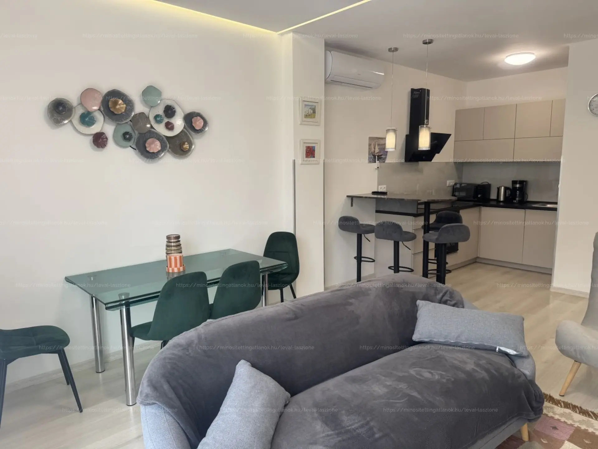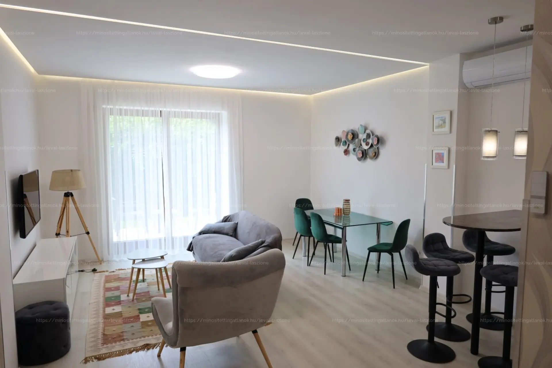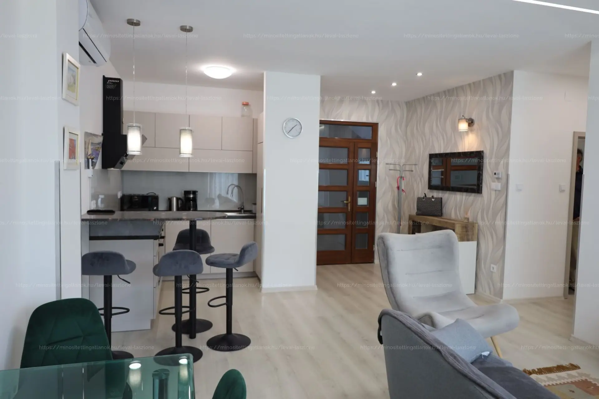 A lakás bútorozott és gépesített (klíma, mosogatógép), így azonnal költözhető, kényelmes otthon. A saját parkolóhely a ház előtt biztosított.