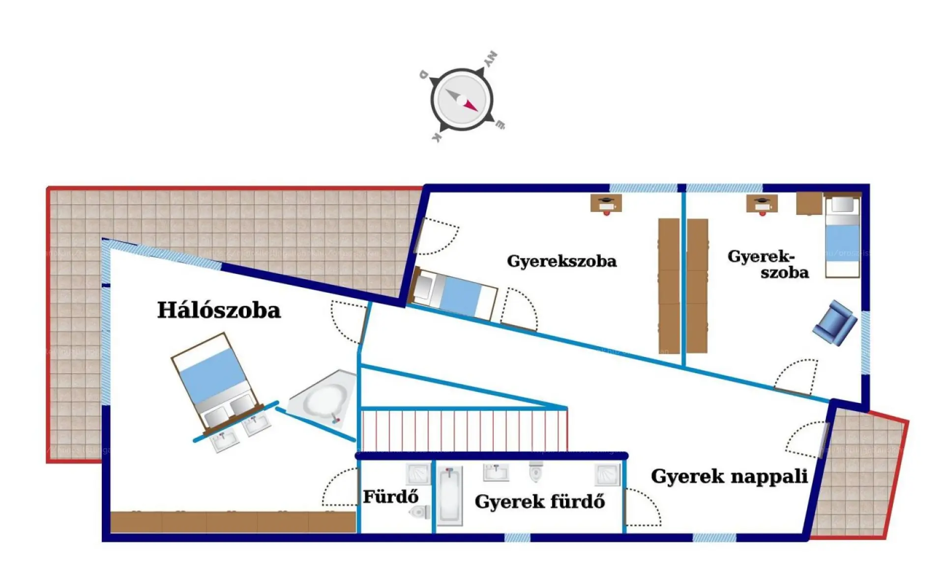 🌞 Földszinti teraszok: 15 m² + 44 m²