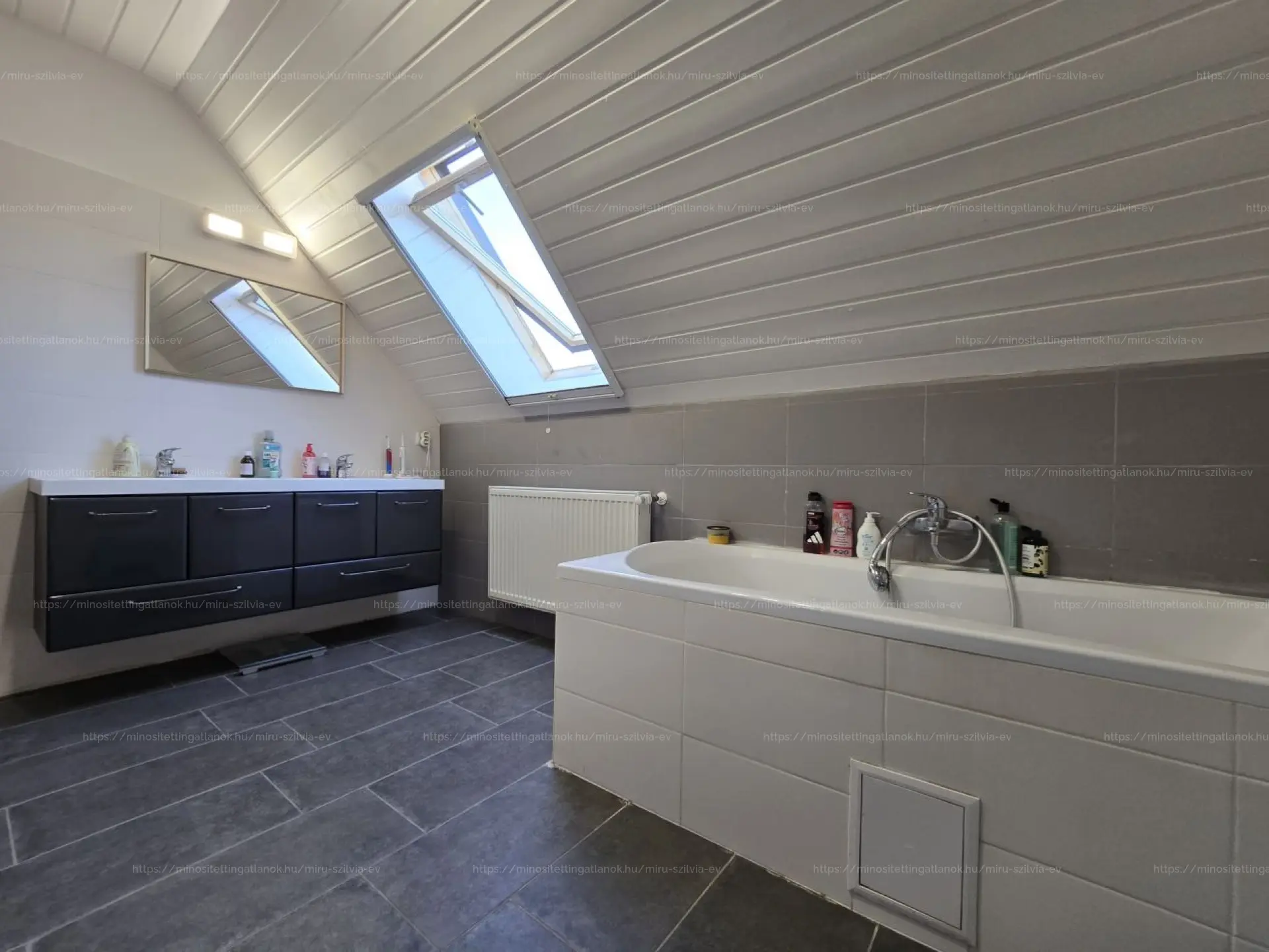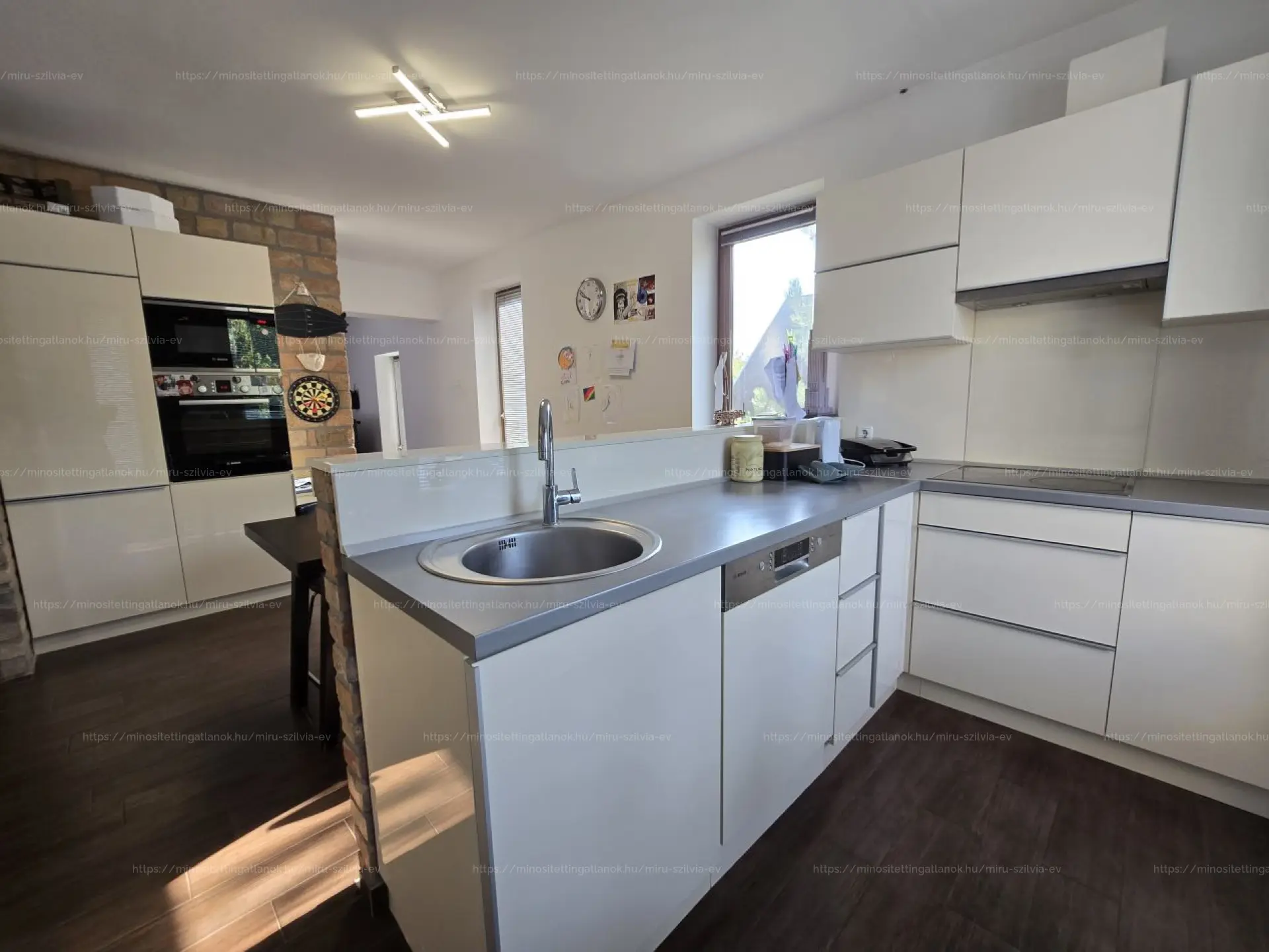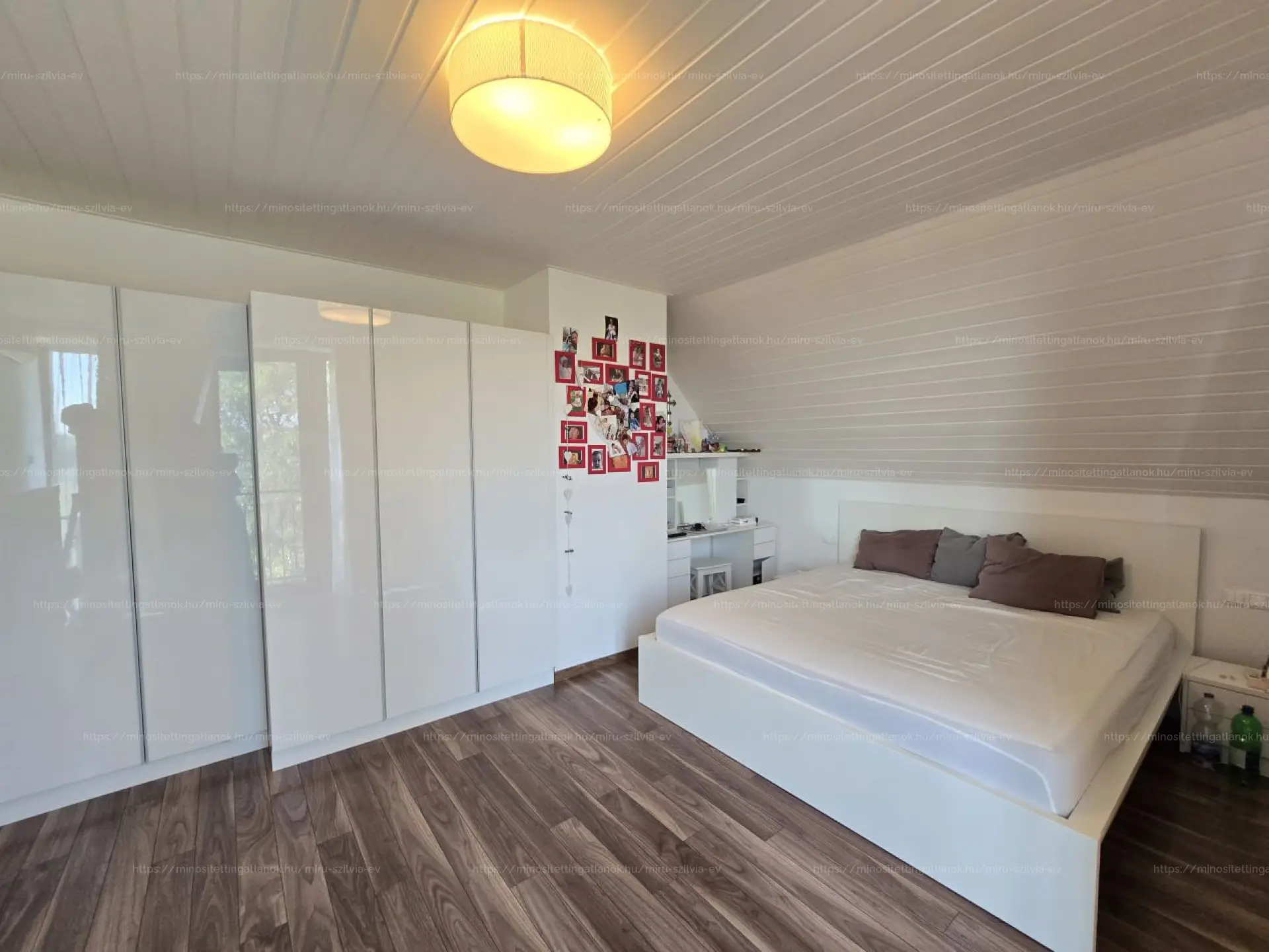 Egyéb extrák: riasztórendszer infra sorompókkal és mozgásérzékelő kamerákkal, két autóbeállásra alkalmas kapu, panorámás kilátás az emeleti szobákból