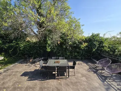 A kert szépen gondozott, locsolórendszer segíti az öntözést, mely elkülönített, locsolási célú mellékvízmérővel rendelkezik